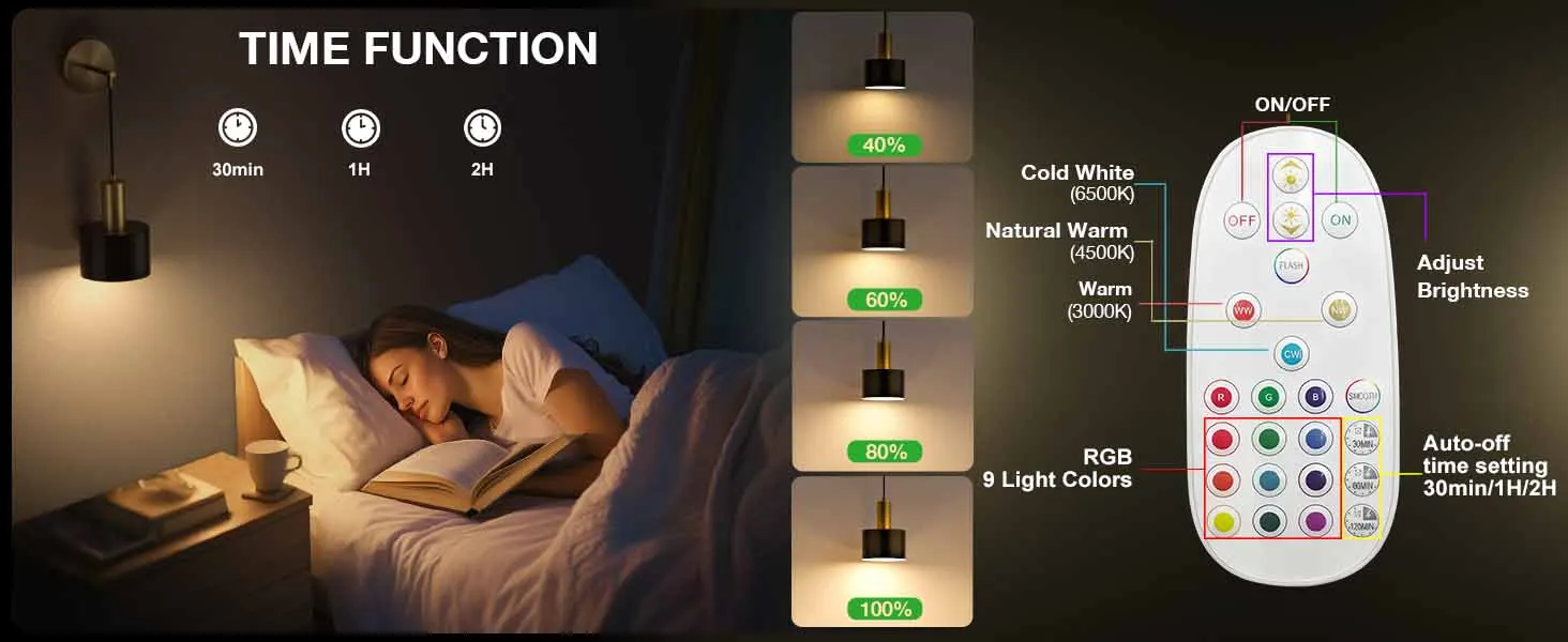 Modern LED Wall Charging Lamp Wireless Remote Controlled Dimmable RGB Bulb For Bedrooms Bedside Tables Hallways Living Room