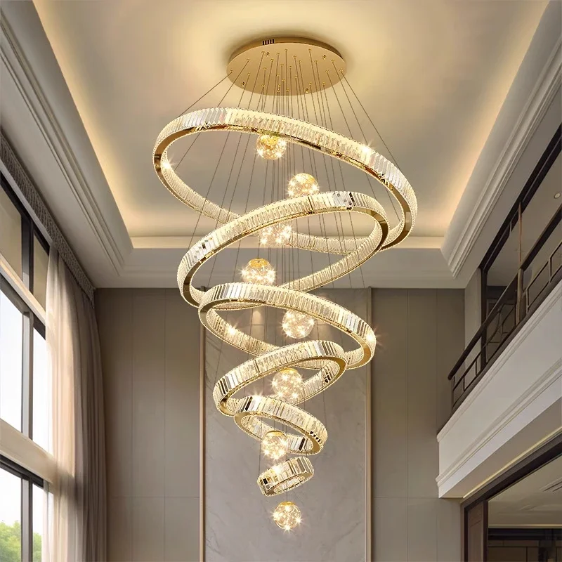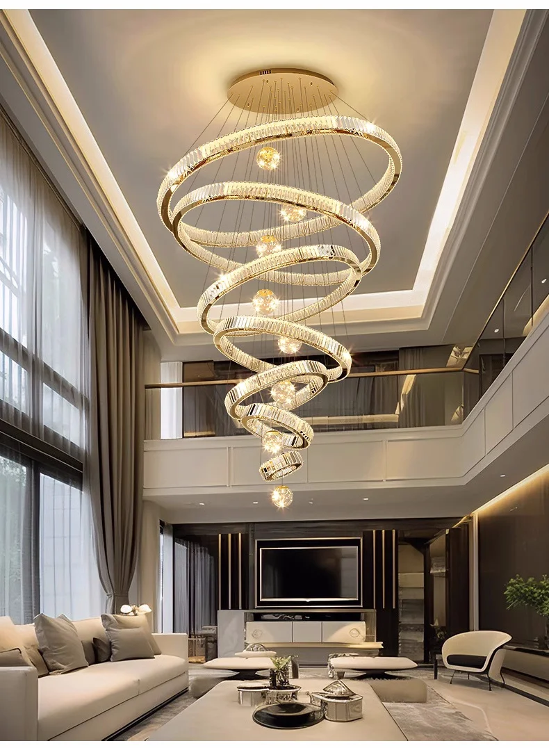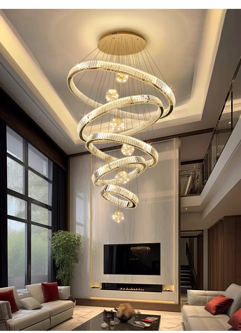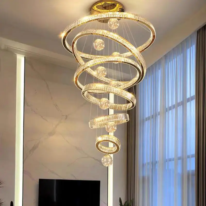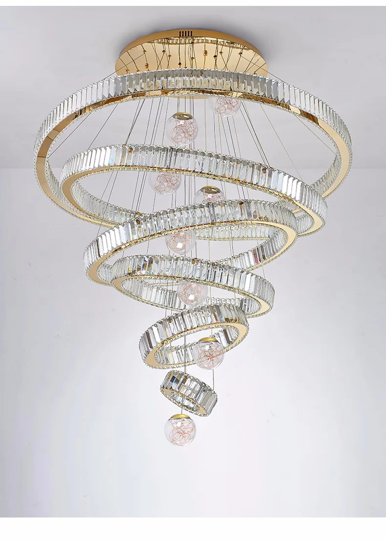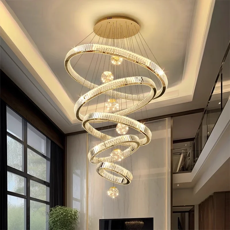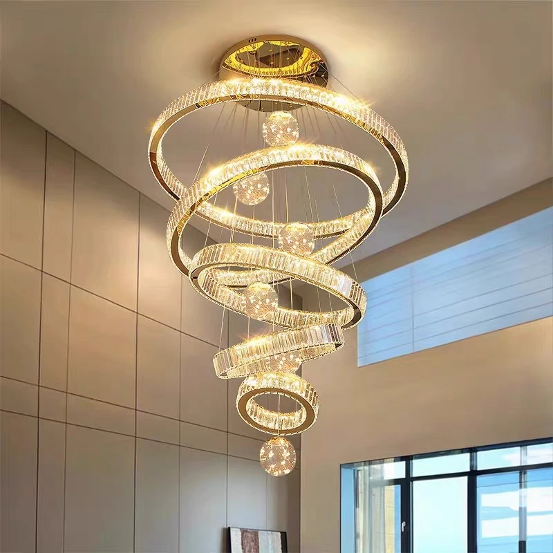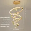 modern Luxury Stairs Dimmable Crystal Pendant Light Class Globe Chandelier Lamp Luminarias Steel Lamparas Decor Indoor Lighting
