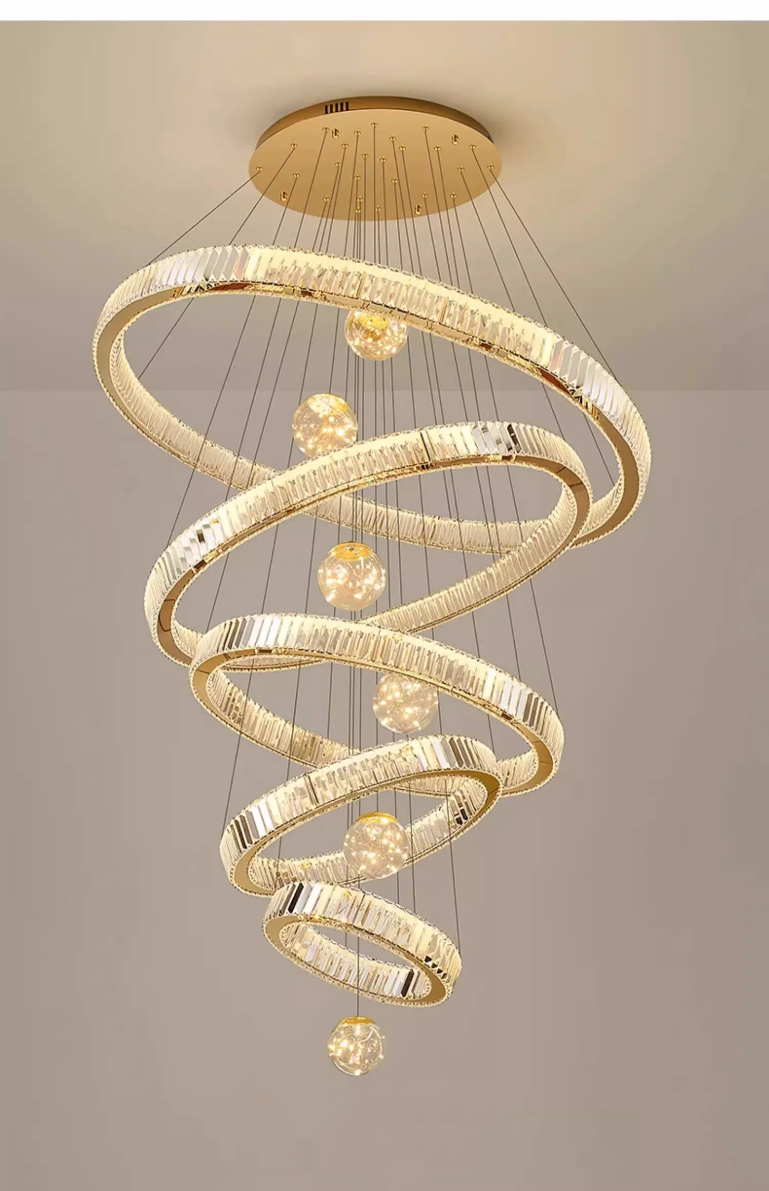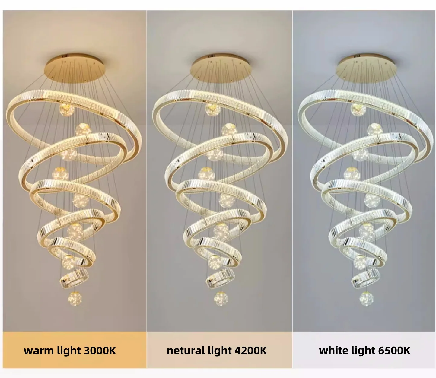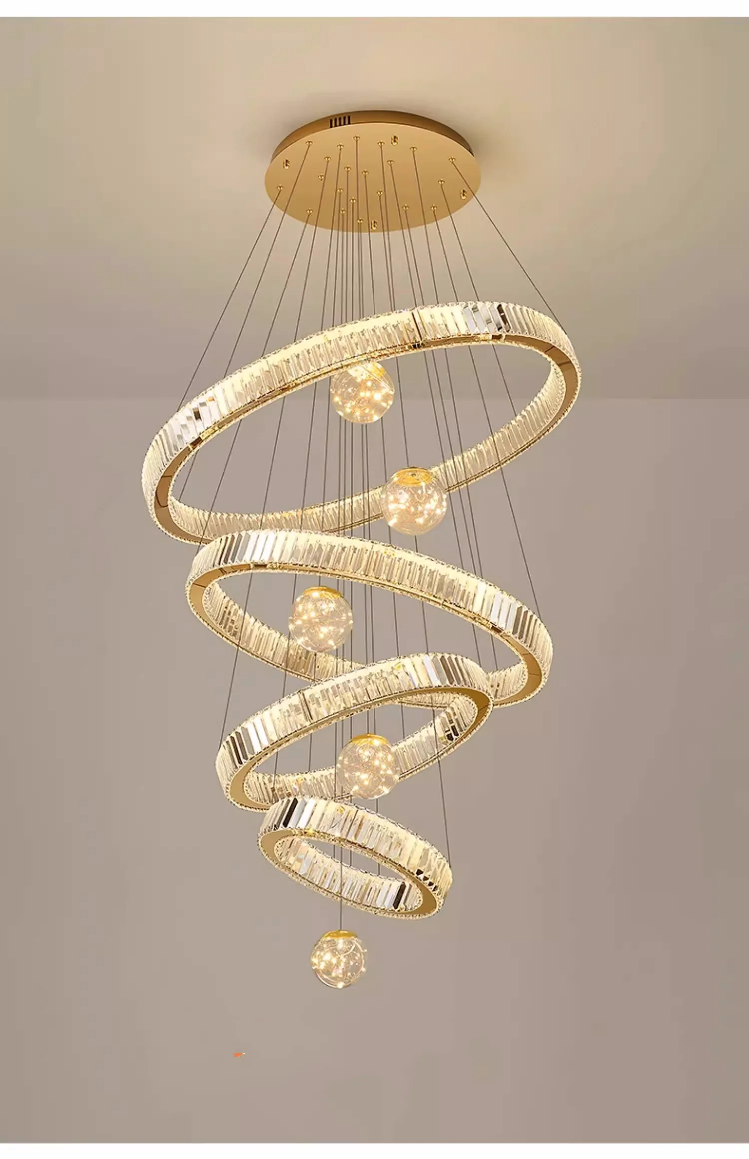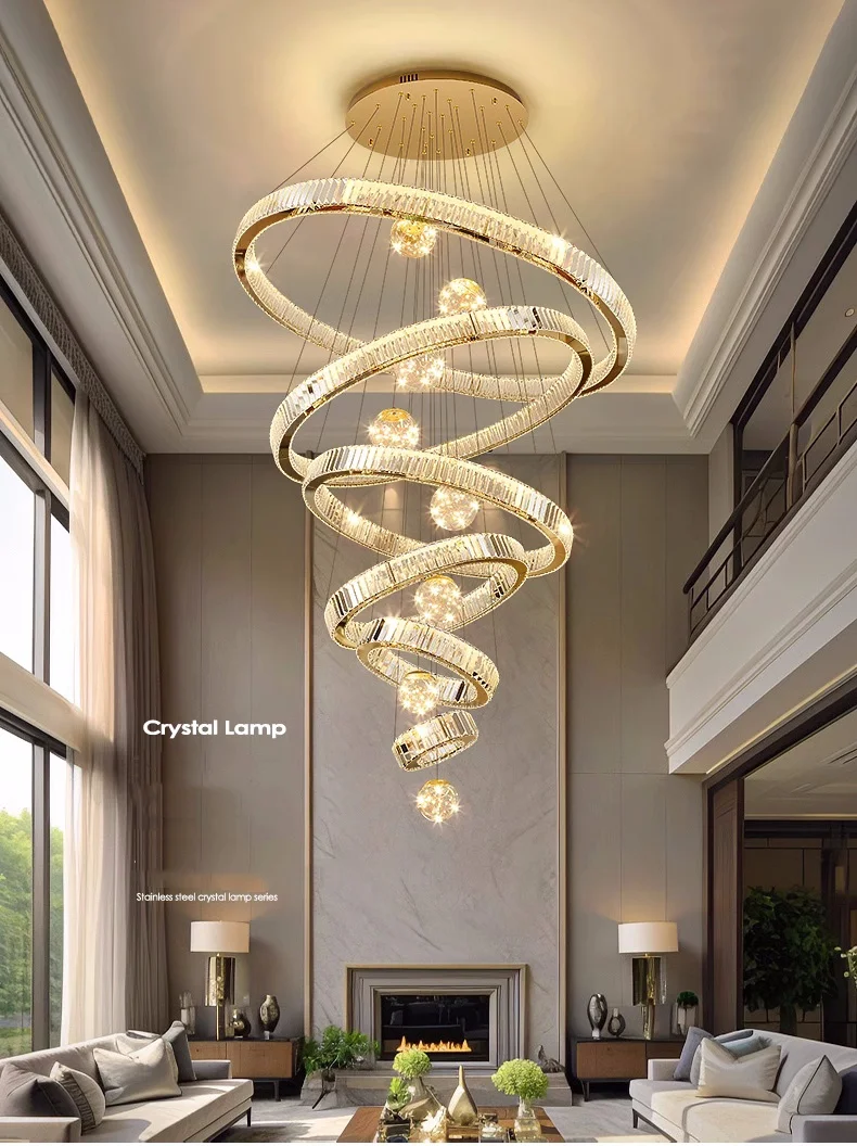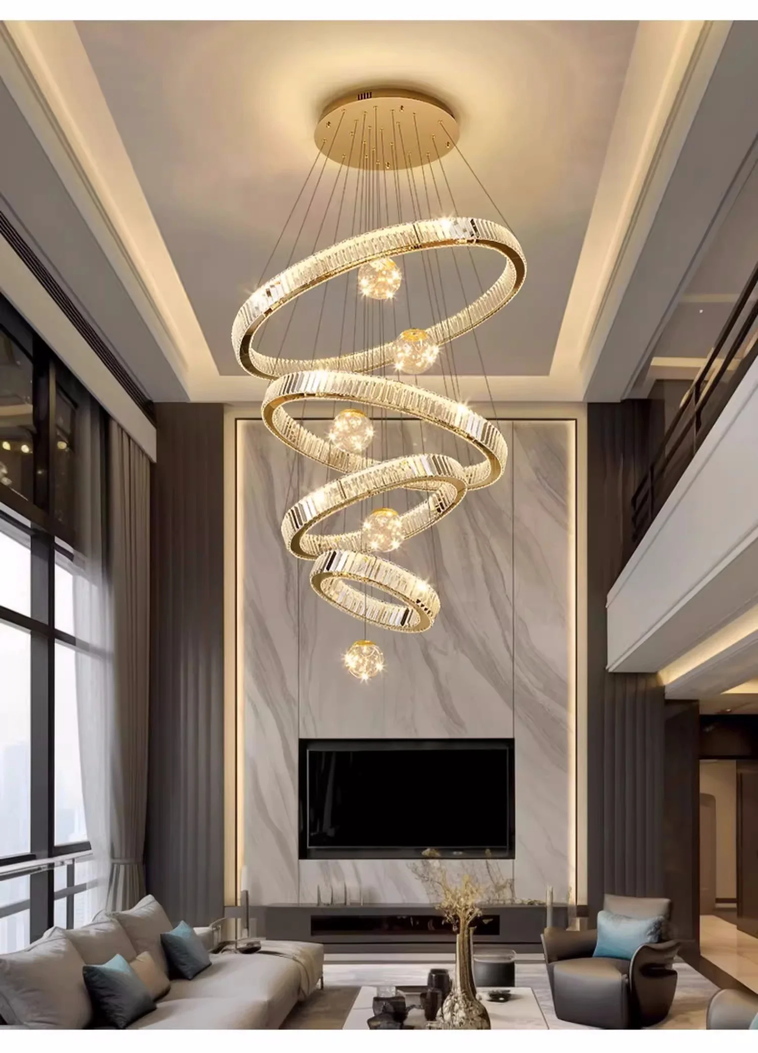 modern Luxury Stairs Dimmable Crystal Pendant Light Class Globe Chandelier Lamp Luminarias Steel Lamparas Decor Indoor Lighting