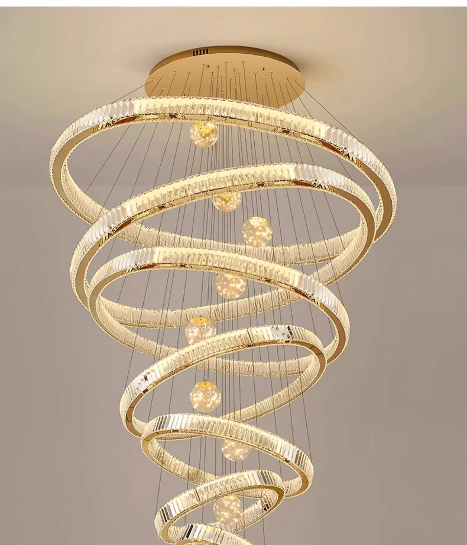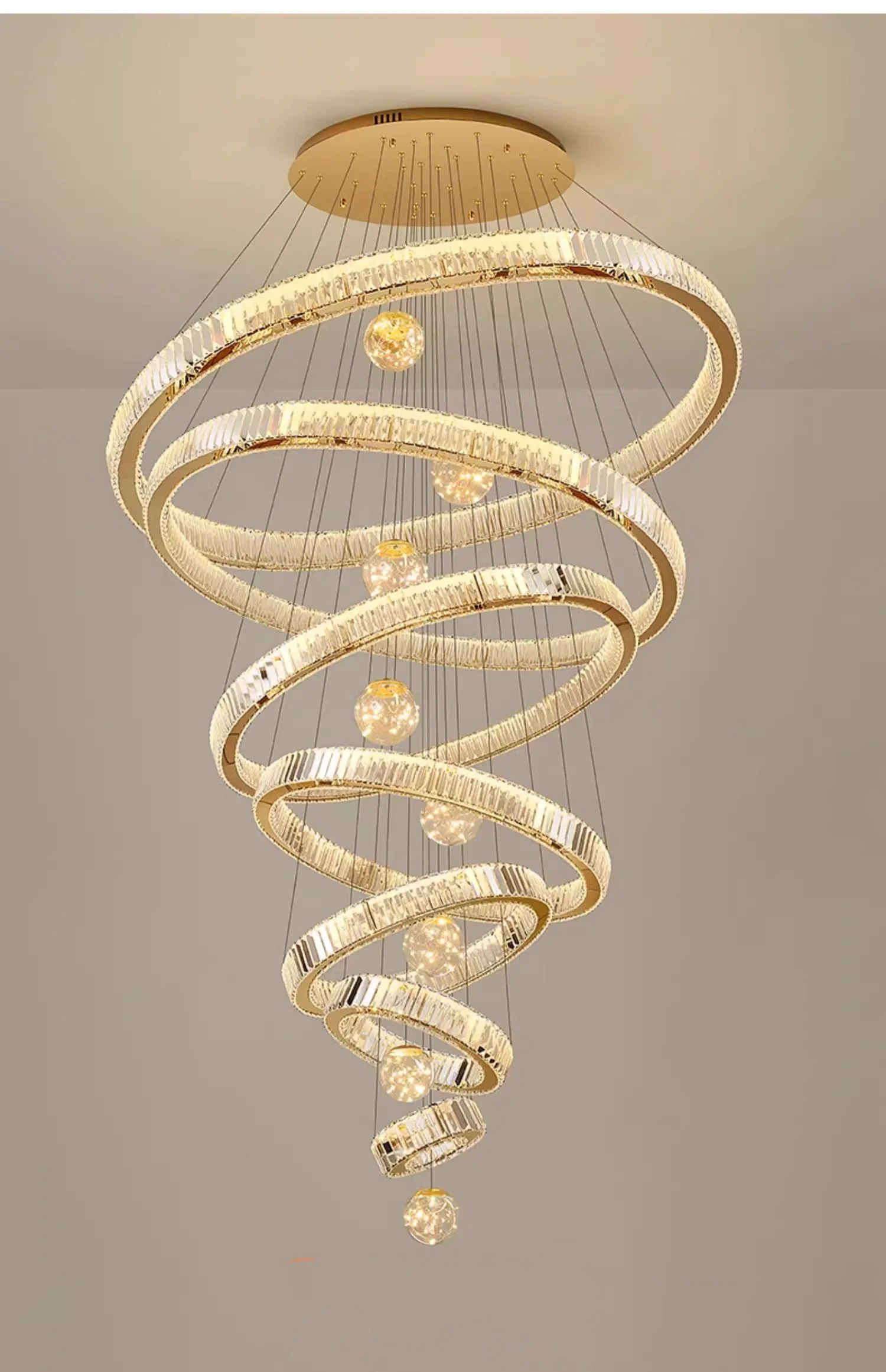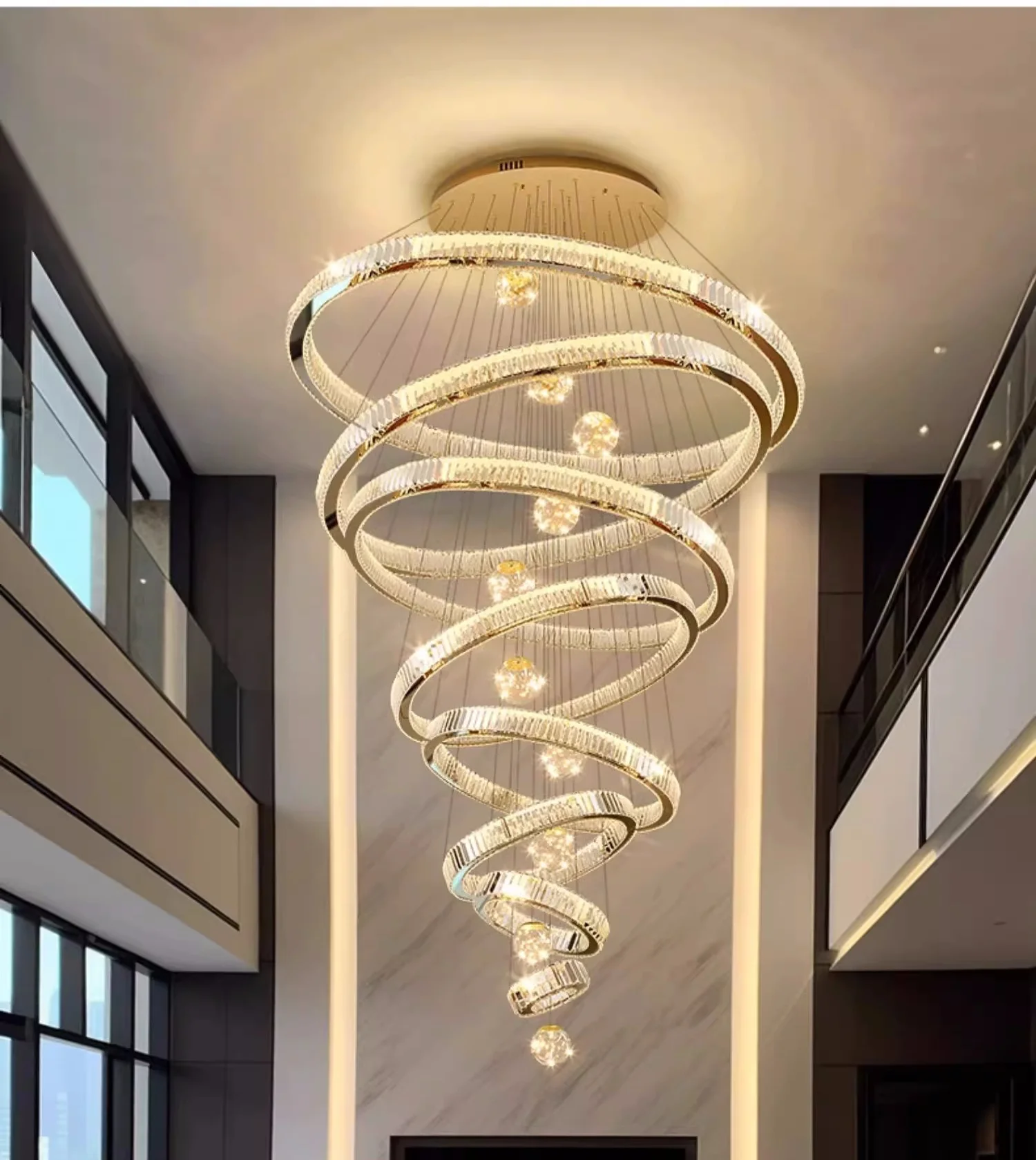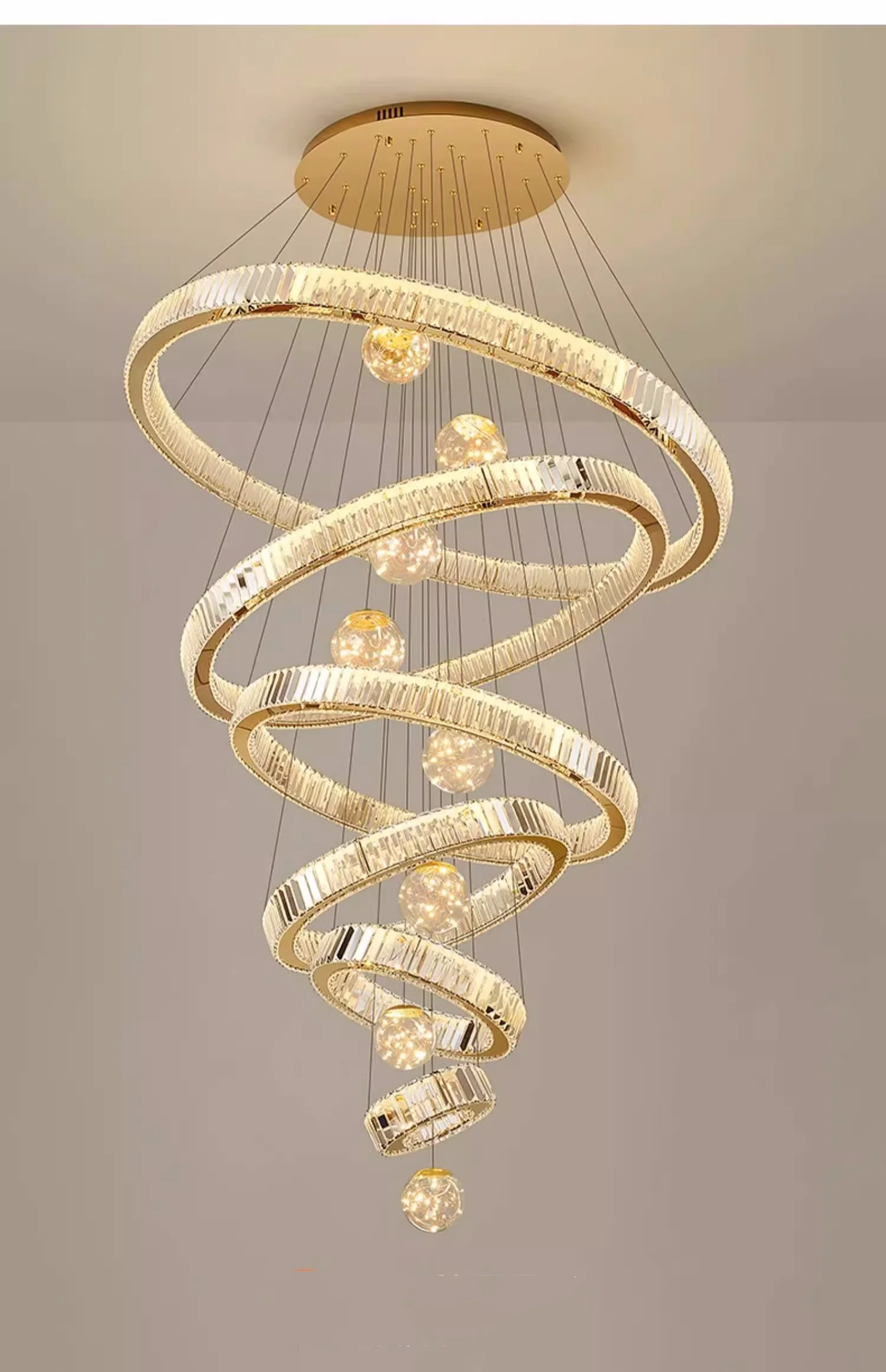 modern Luxury Stairs Dimmable Crystal Pendant Light Class Globe Chandelier Lamp Luminarias Steel Lamparas Decor Indoor Lighting