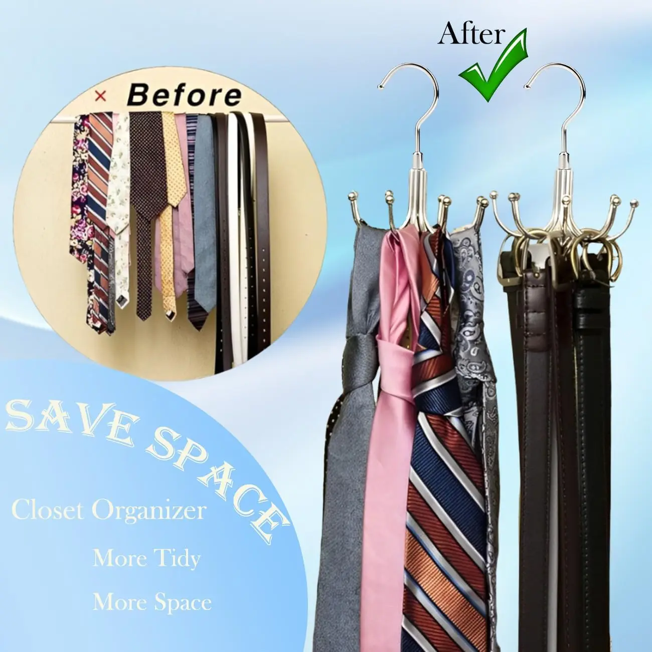 Wardrobe Essential Organizer: Our upgraded hanger features a swivel function that allows you to easily access any of its 8 hooks, making all of your accessories easily accessible from any position, making your daily life more efficient than ever – from belts and scarves to hats and jewelry.