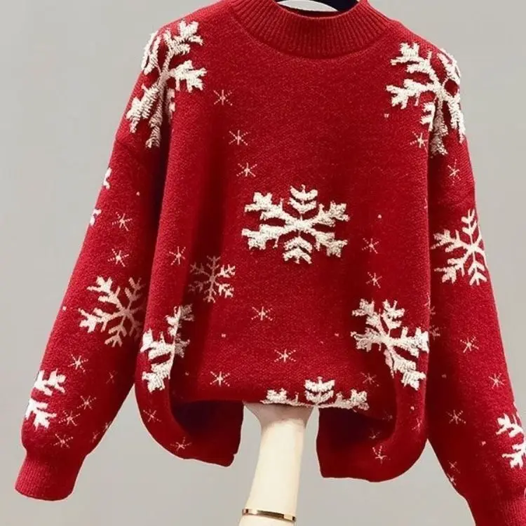 New and Versatile Knitted Sweater Pullover Base Shirt Underwear Autumn and Winter Chinese Red New Year Christmas Trendy Women