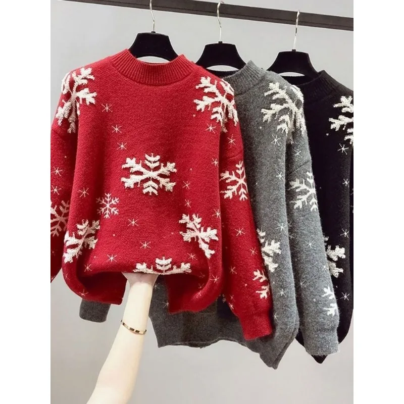 New and Versatile Knitted Sweater Pullover Base Shirt Underwear Autumn and Winter Chinese Red New Year Christmas Trendy Women