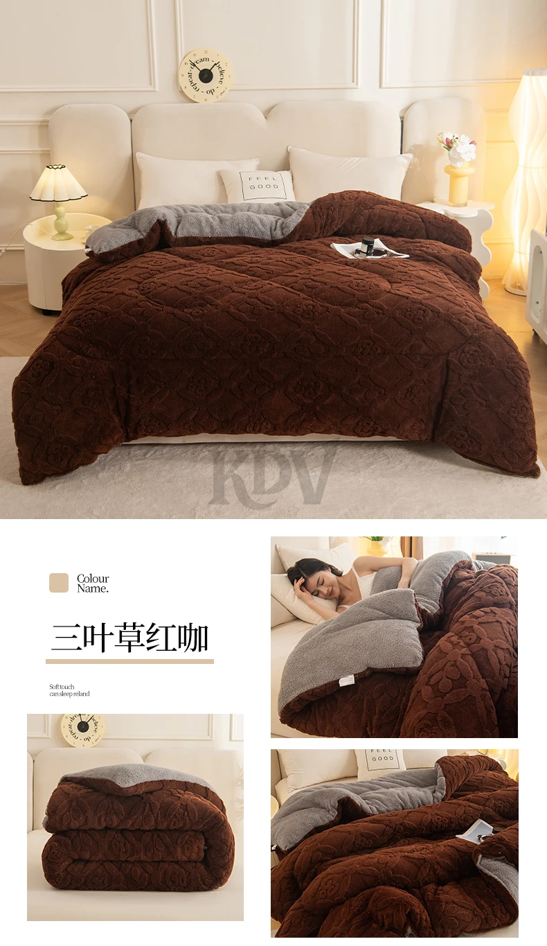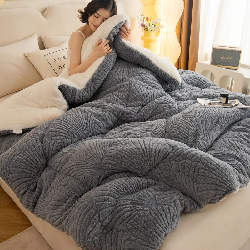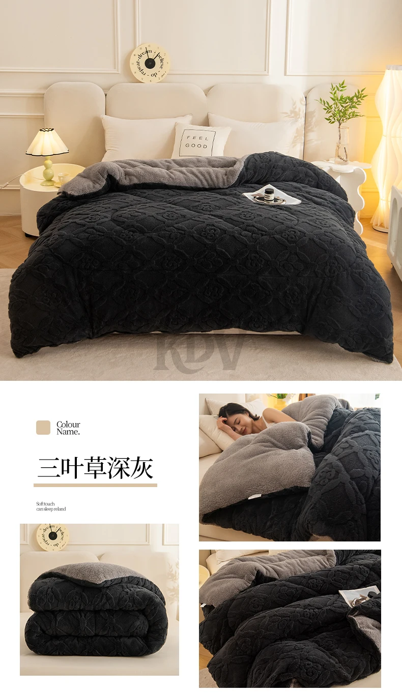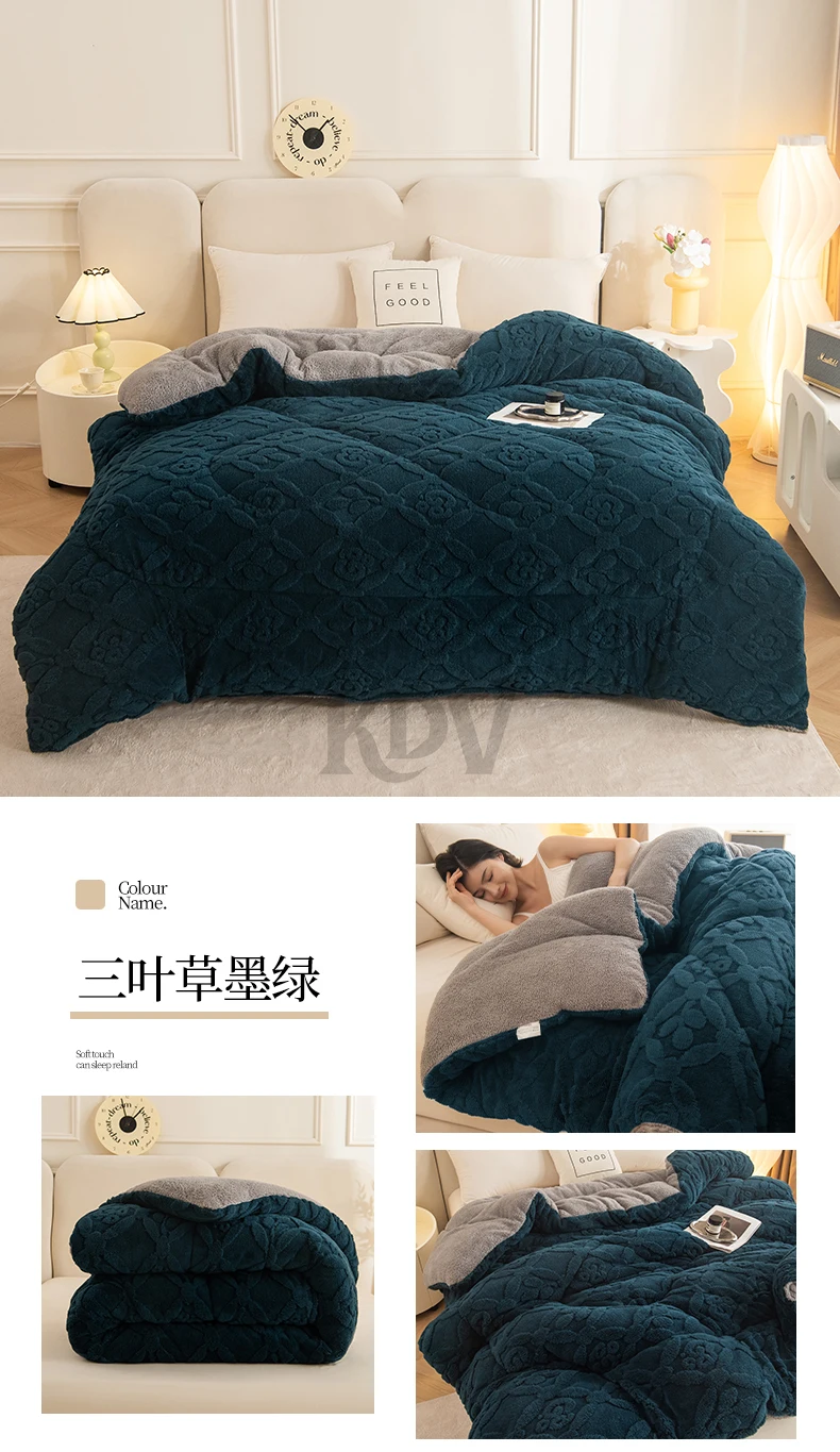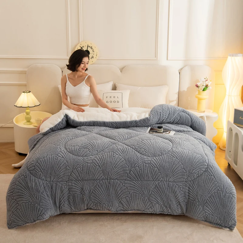 New Jacquard Velvet Thick Winter Blanket for Bed Artificial Lambswool Weighted Blanket for Sleeping Single Double Warm Comforter