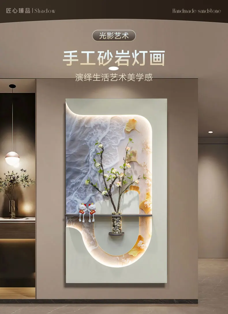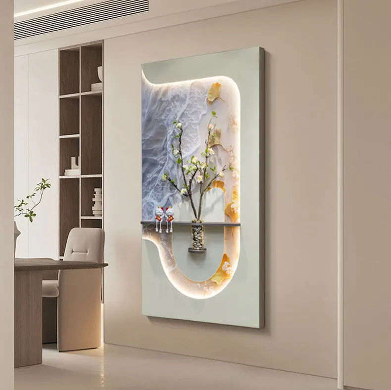 New Mural Lamp Hydroponic flower arrangement hanging painting milk oil wind entrance decoration sandstone living room painting