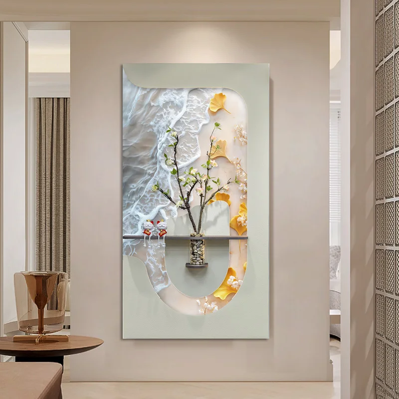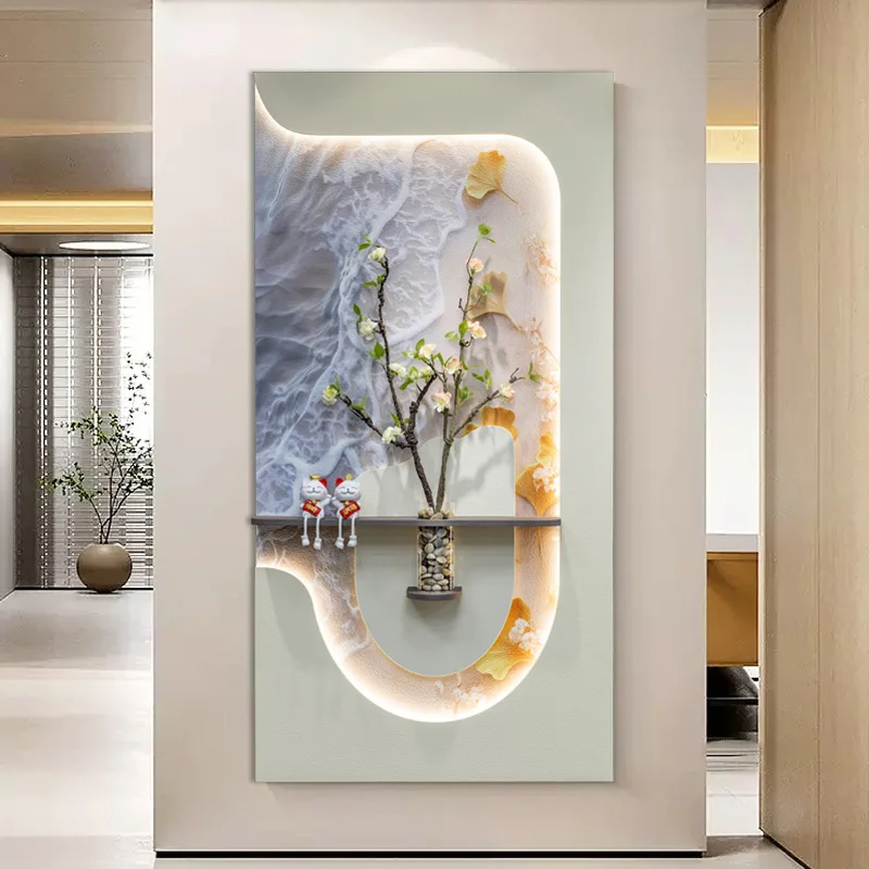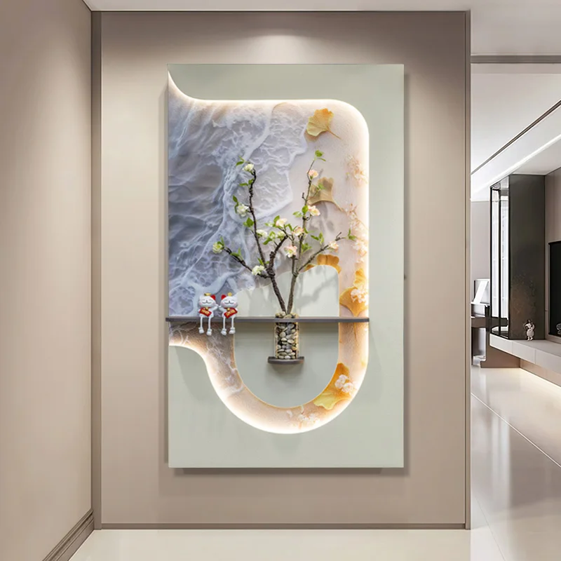 New Mural Lamp Hydroponic flower arrangement hanging painting milk oil wind entrance decoration sandstone living room painting