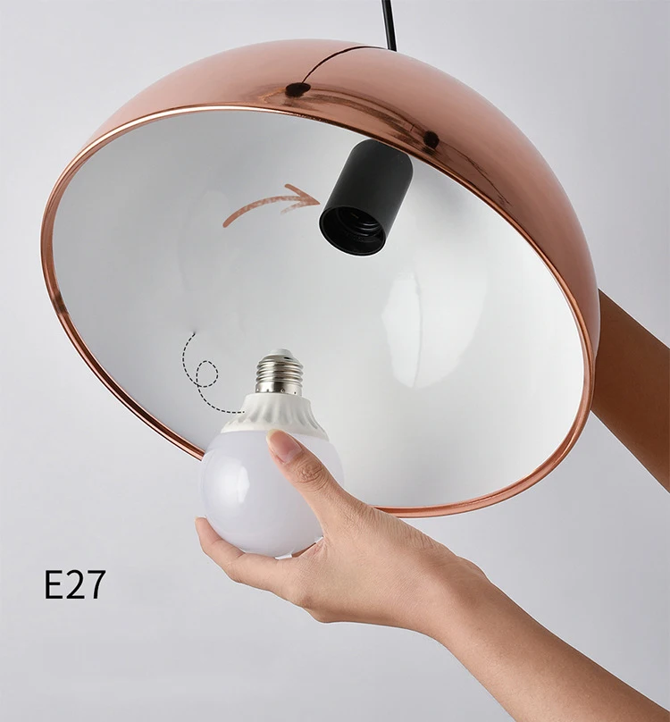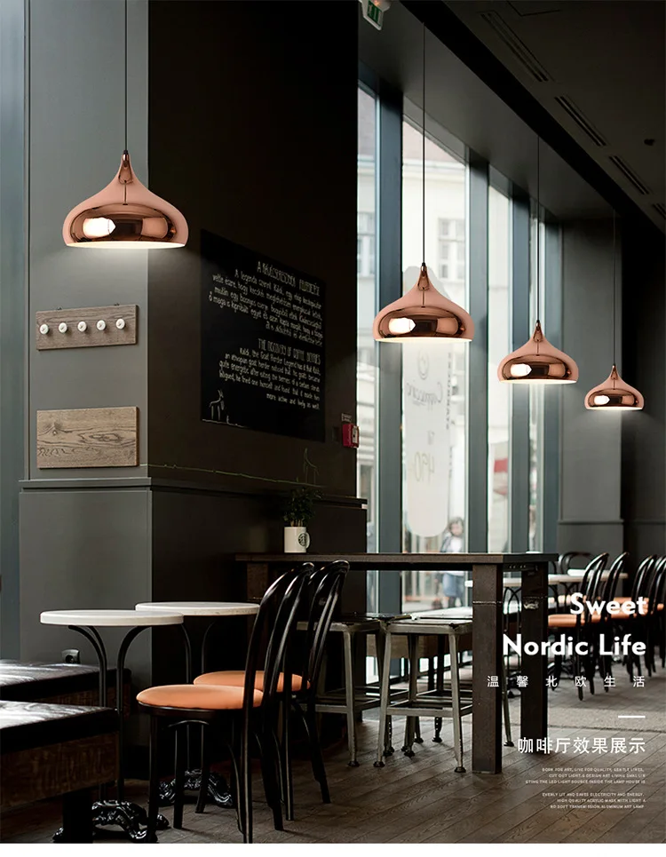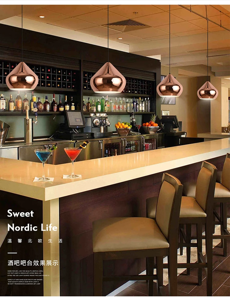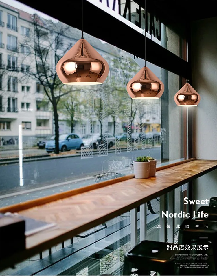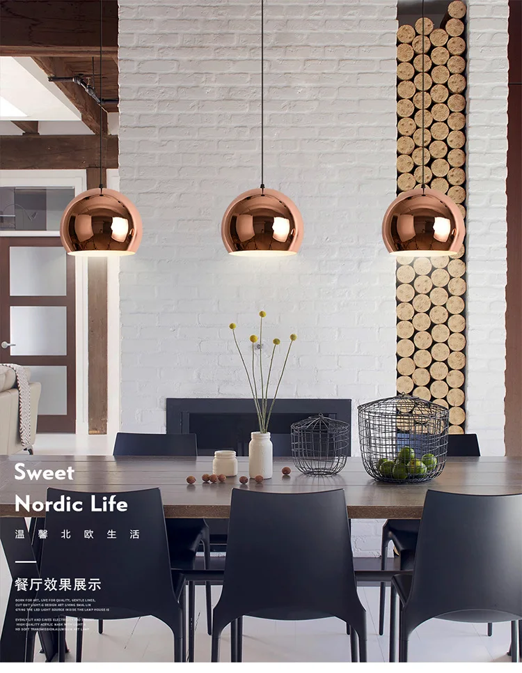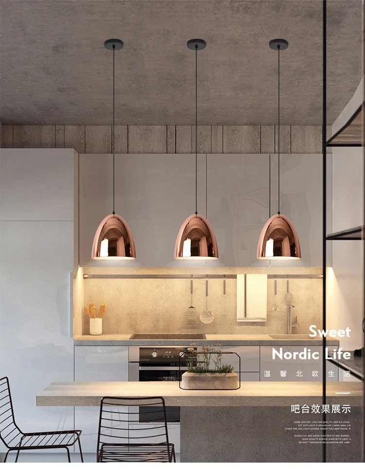 Nordic Rose Gold Pendant Lights Plated Metal Hanging Lamp Fixtures Dining Room Kitchen Island Bar Cafe Indoor Decor Lighting E27