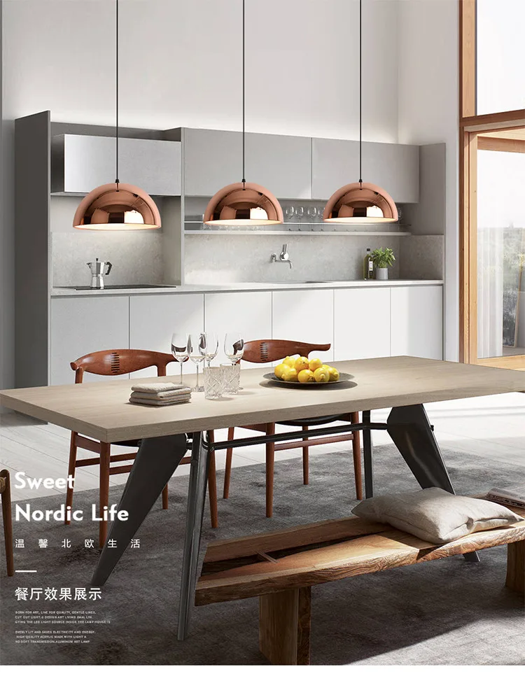 Nordic Rose Gold Pendant Lights Plated Metal Hanging Lamp Fixtures