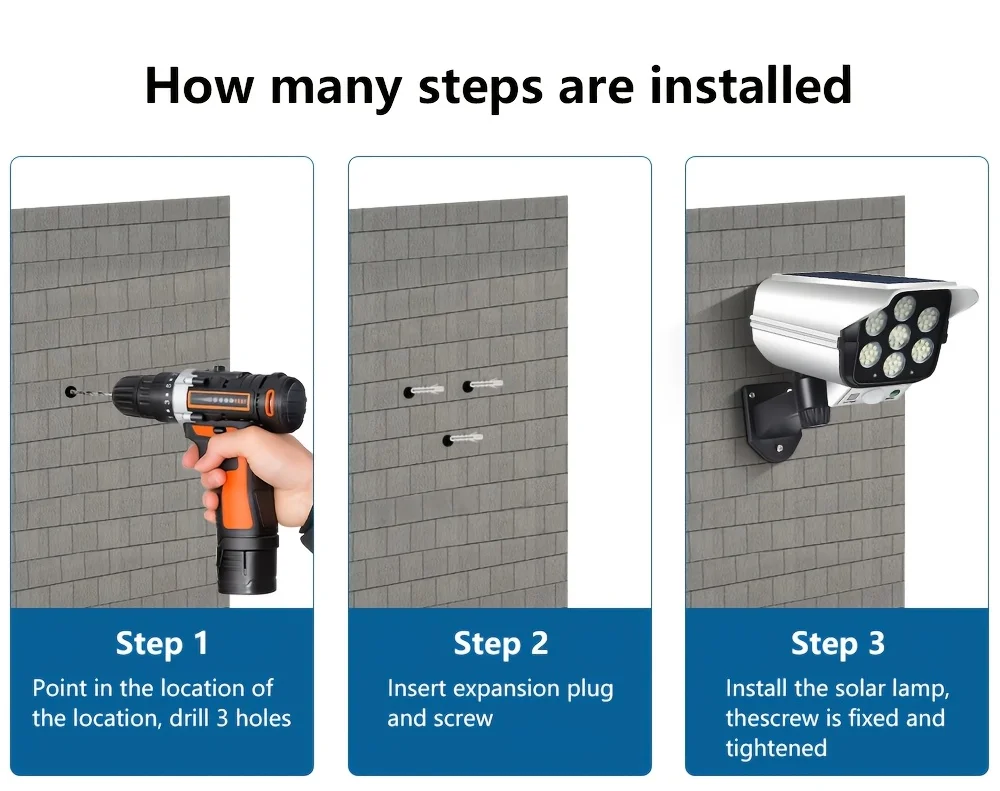 Solar wall lamp is equipped with a thick waterproof ring on the outside and built-in circuit insulation protection, which can be used normally even in bad weather such as rain and snow.