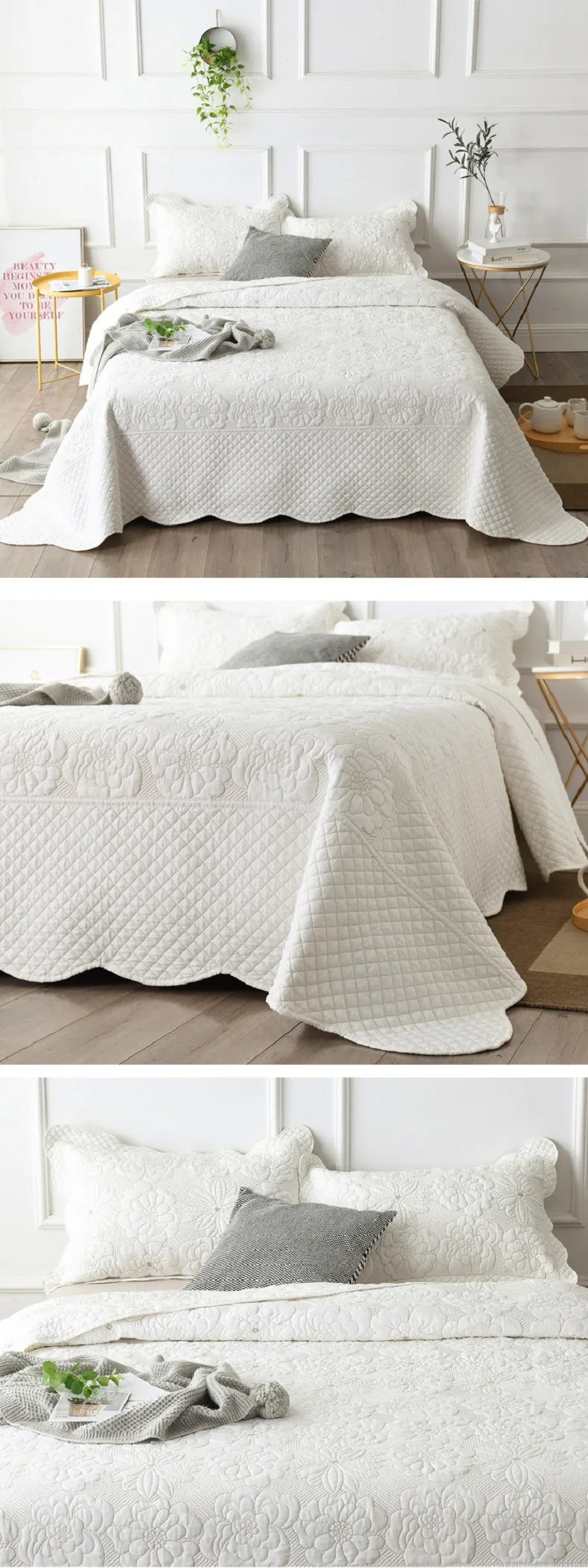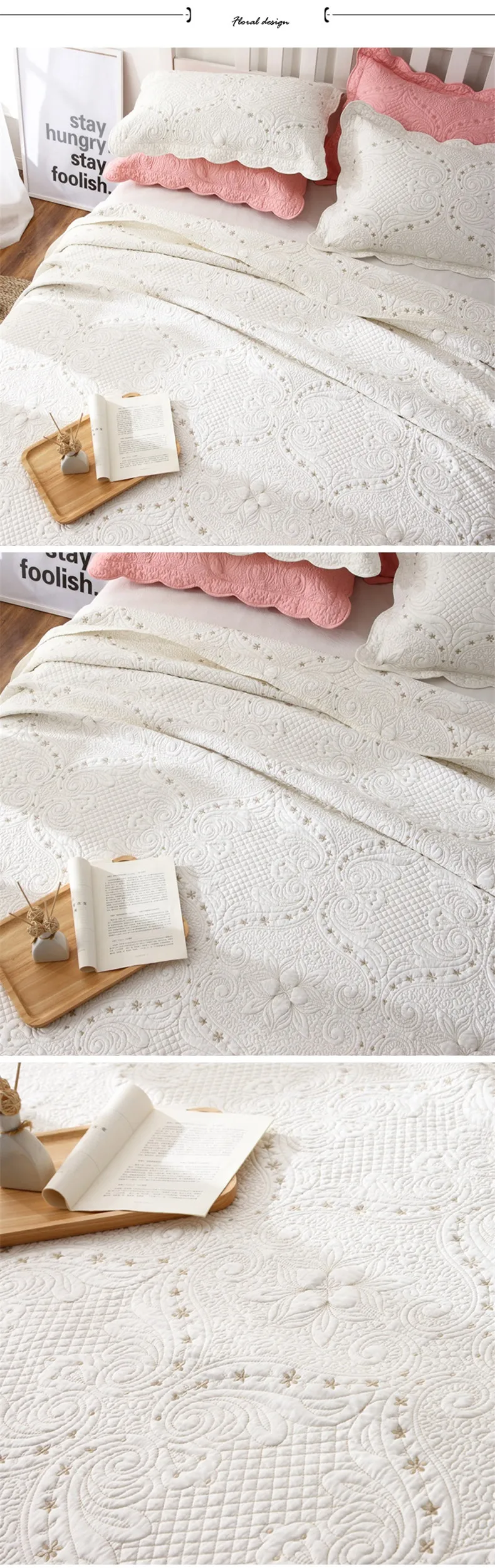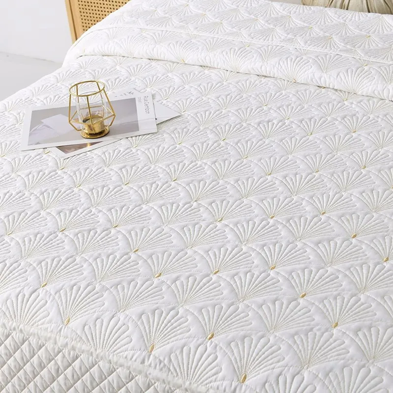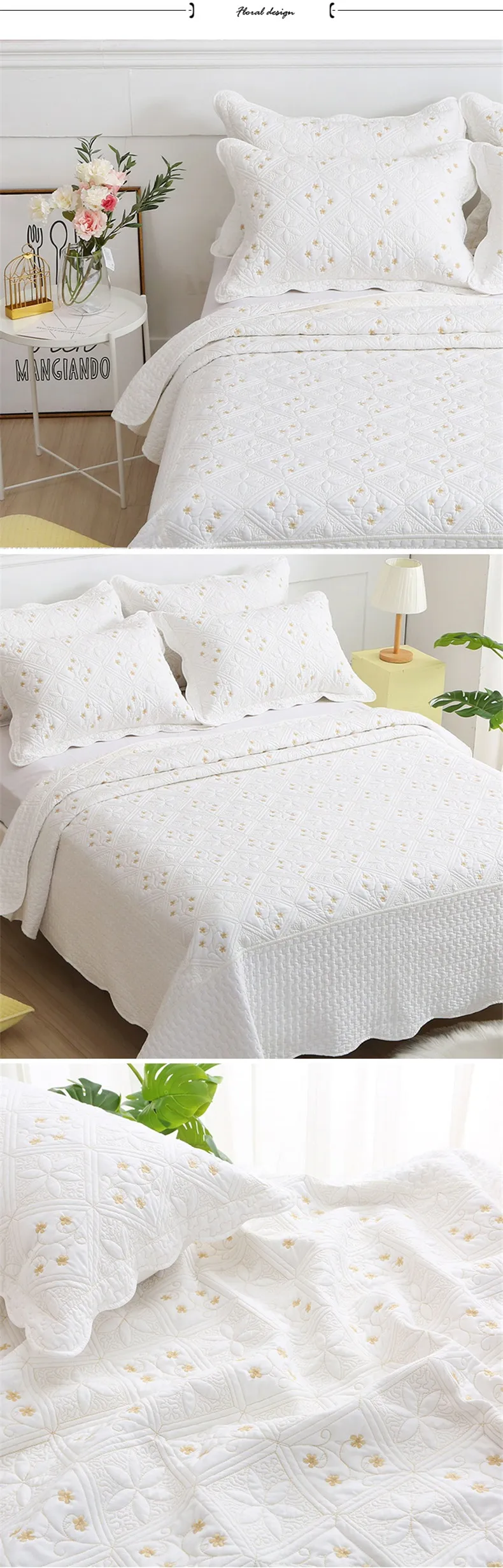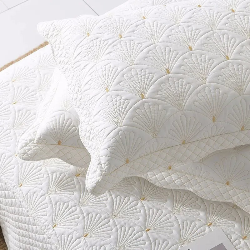Padded Cotton Quilt Set with Shams, White Embroidered Bedspread on The Bed, Quilted Blanket for Bedroom, Home Bed Cover, 3Pcs