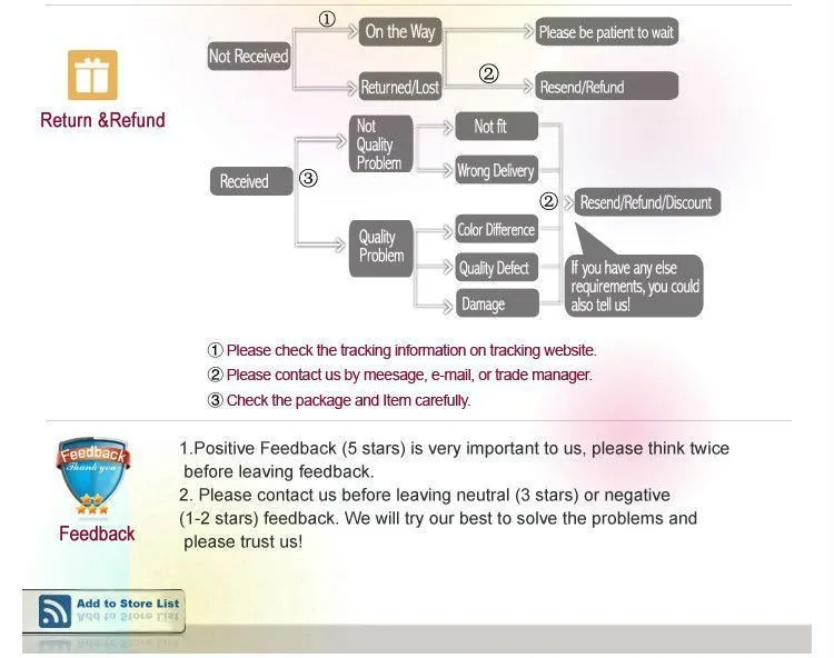 • If you received the wrong item you can request a refund or a reshipment.