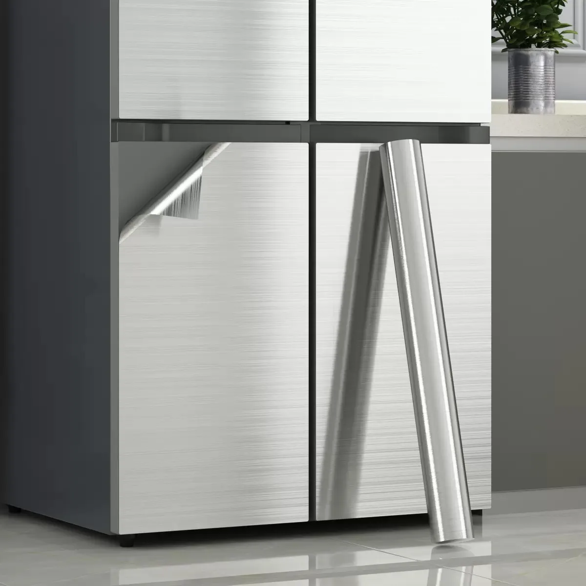 • Metallized Films :This Thick Silvery Stainless Steel Brushed Contact Paper is a metallized film, offering a luxurious and high-end aesthetic to your space.