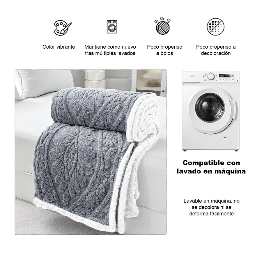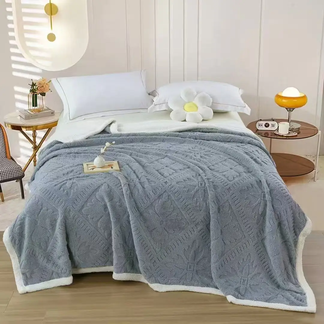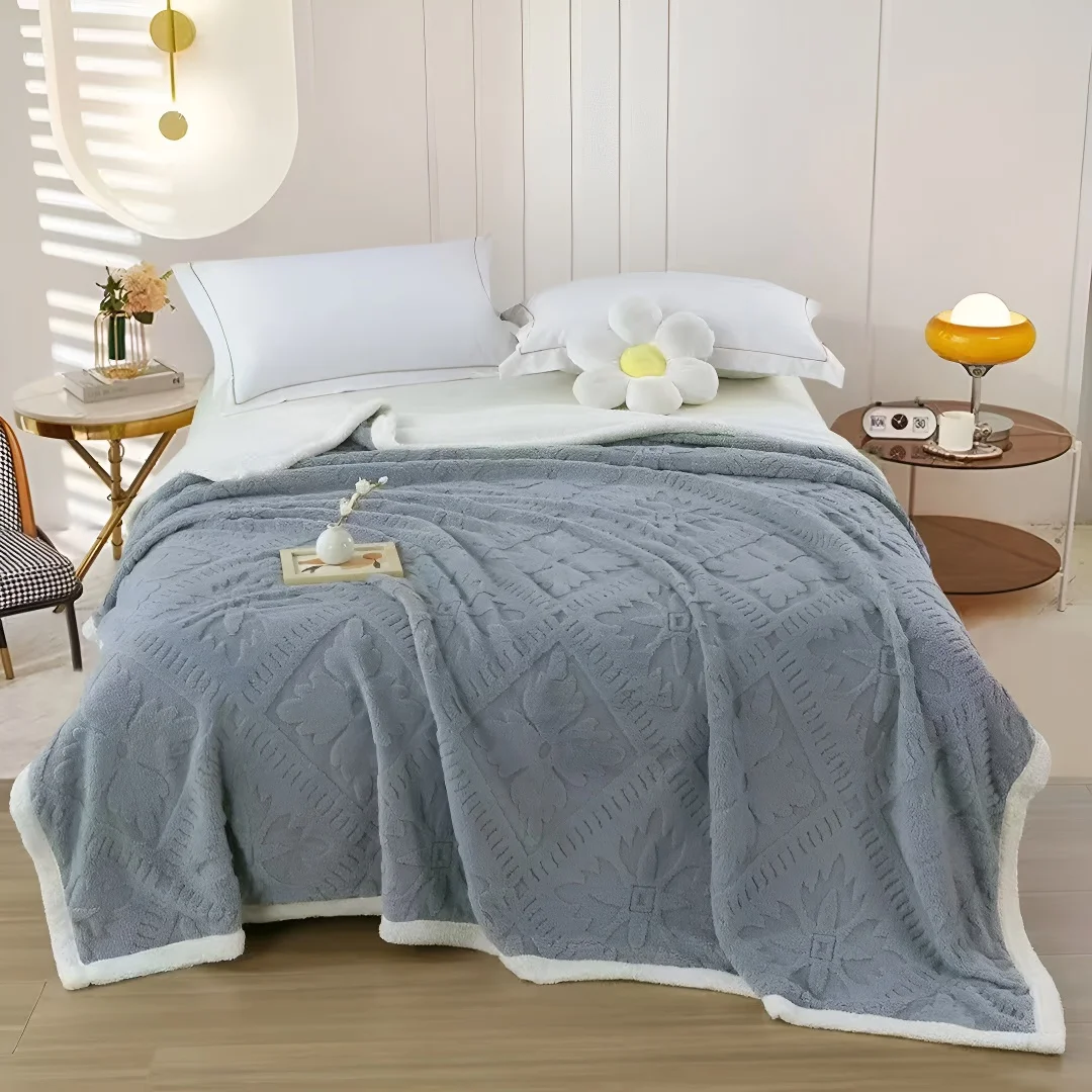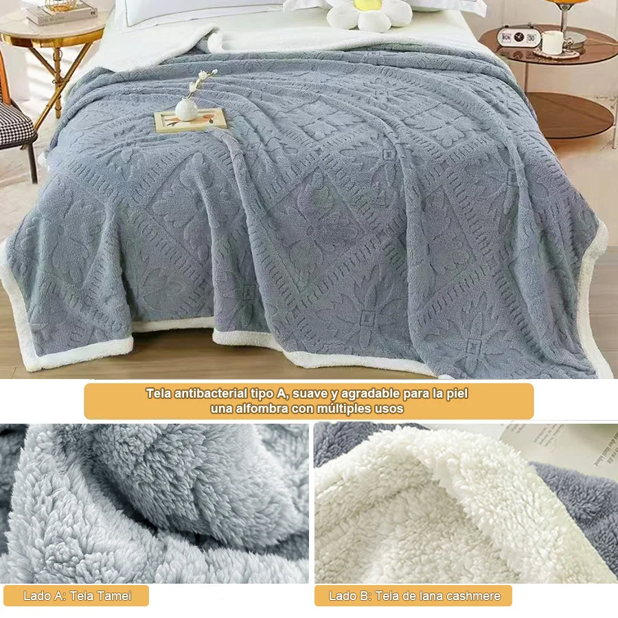 Modern and soft on both sides: this double-sided blanket features a thick fleece microfiber design on one side and a thick lamb hair design on the other.It is ultra-comfortable with a furry texture and maintains modern style and year-round comfort.
