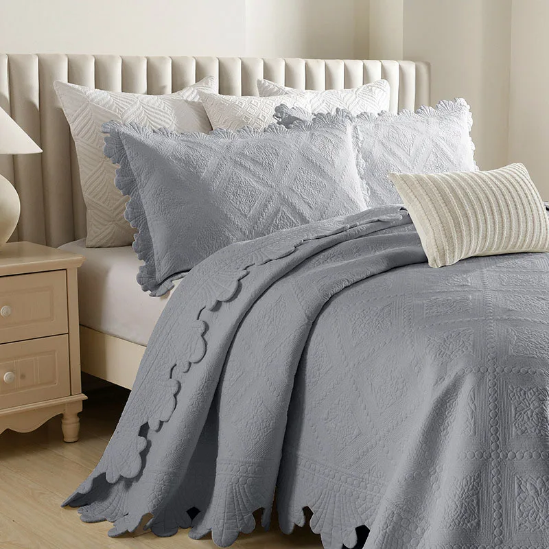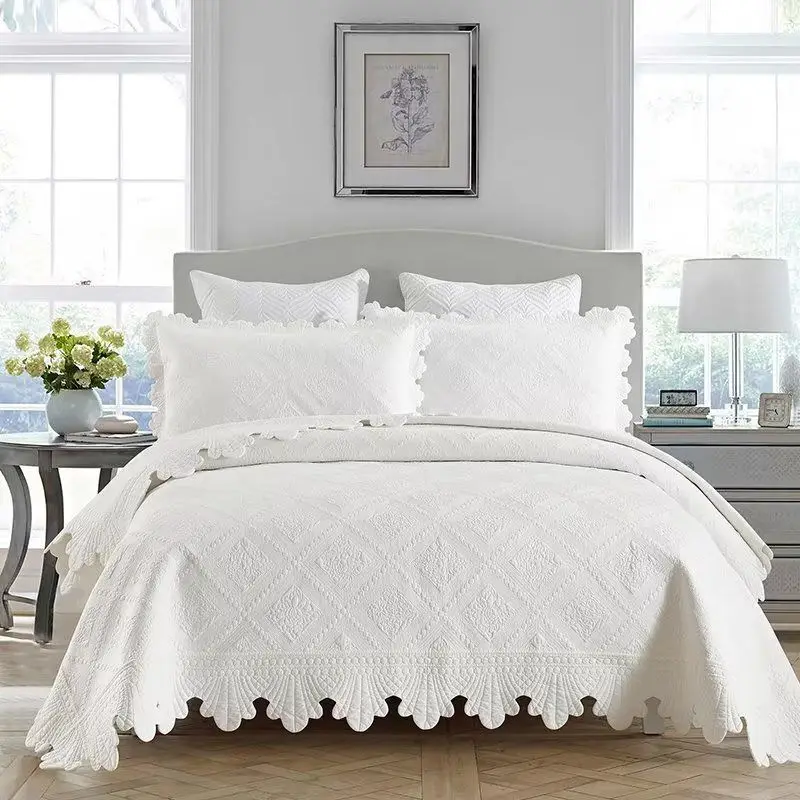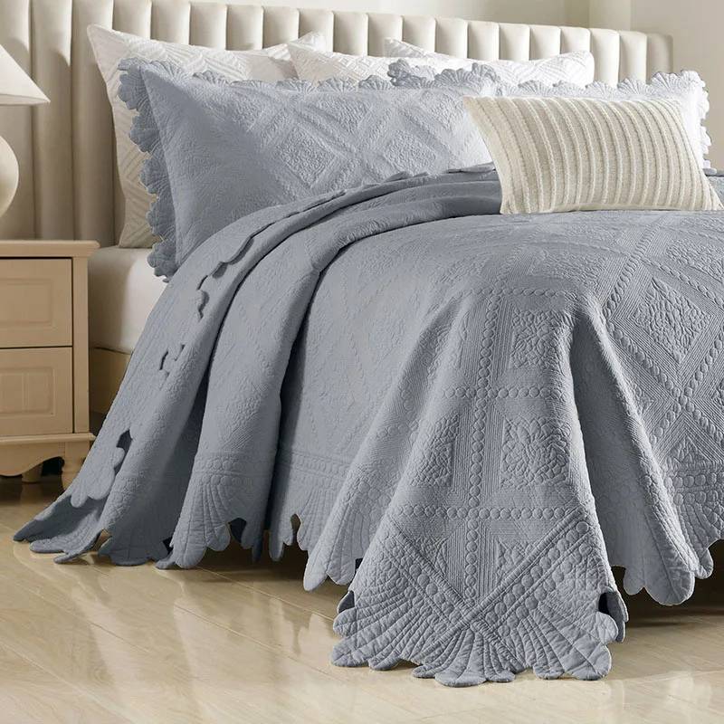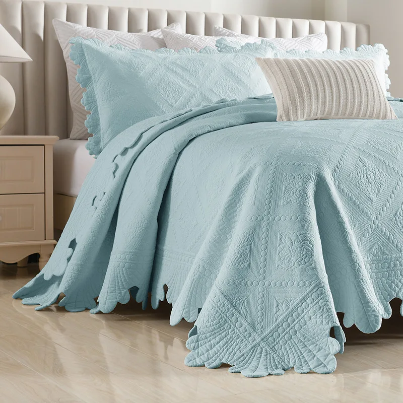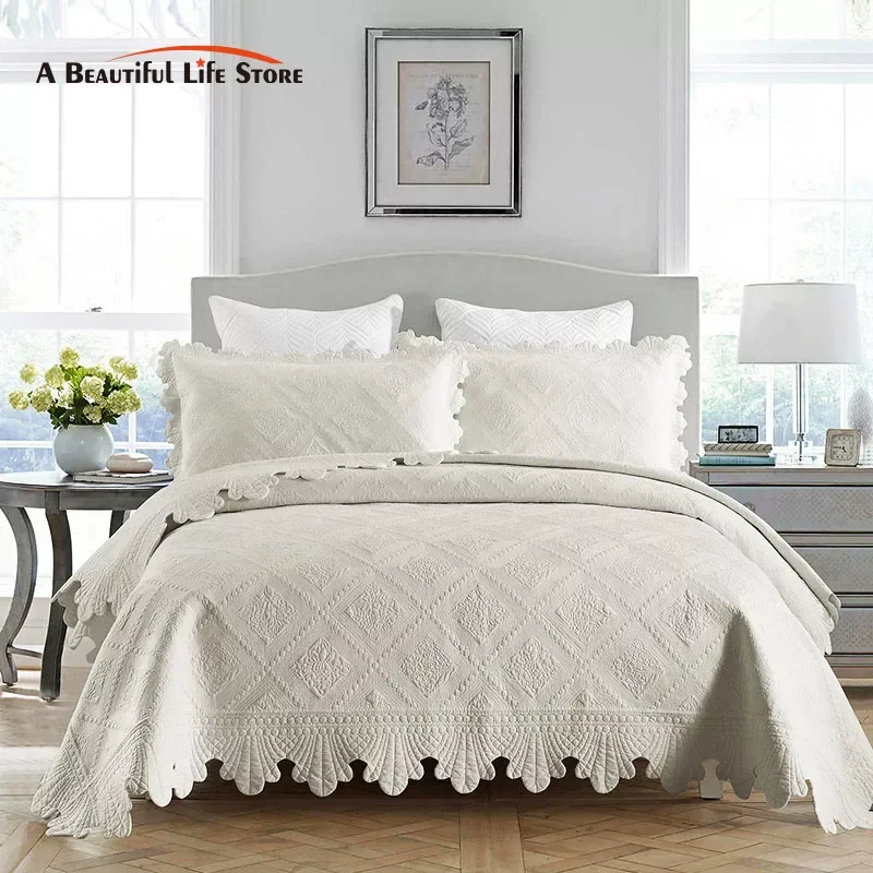 Quilted Bedspread with Pillowcase, 100% Cotton, Embroidery Quilt Set, Queen Size, Bed Cover, Summer Blanket, Double Size, 3Pcs