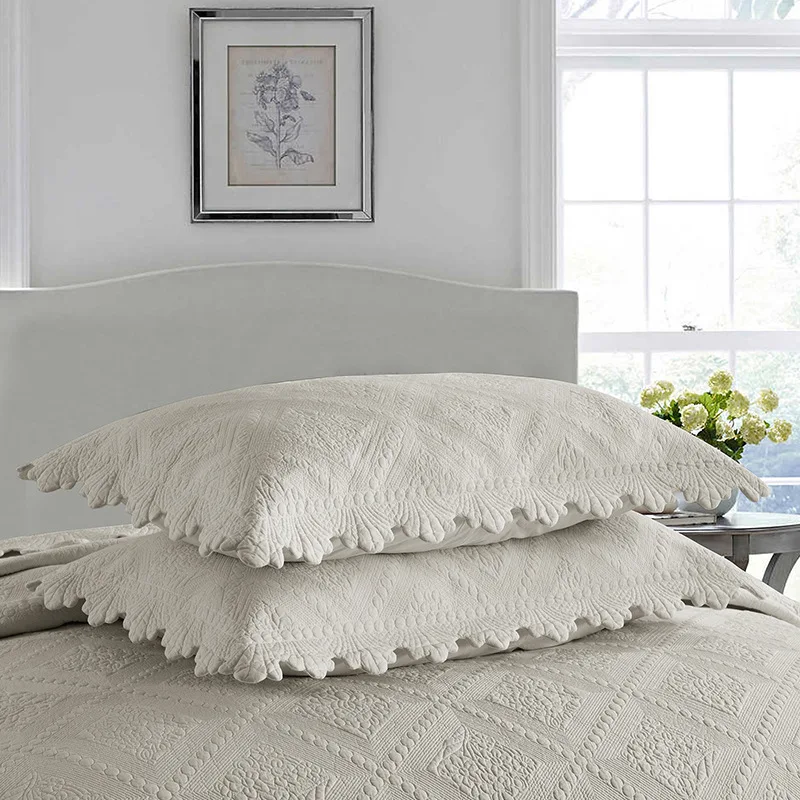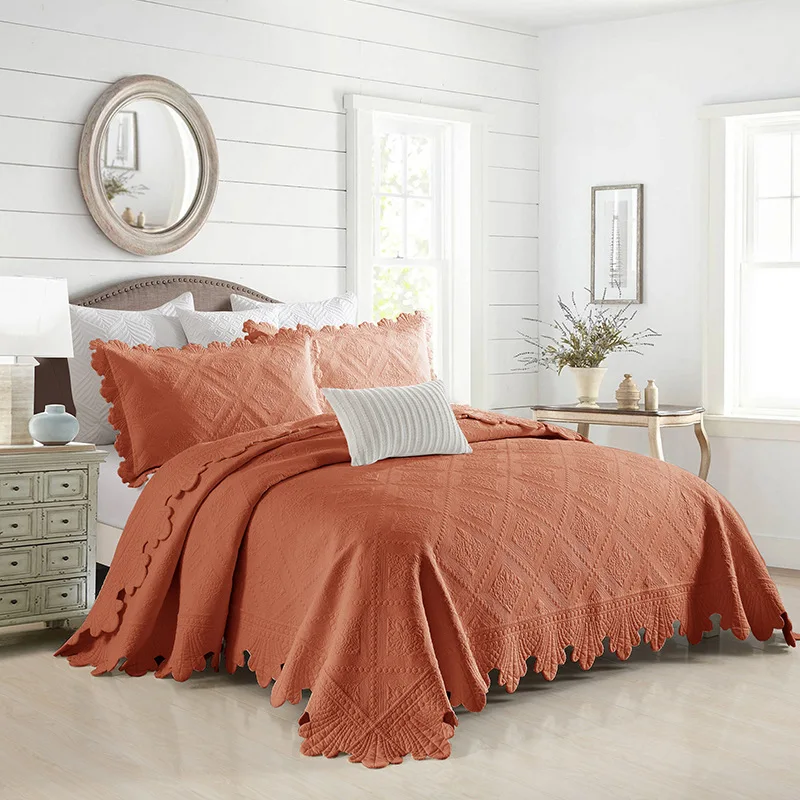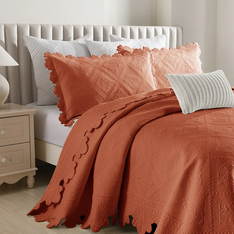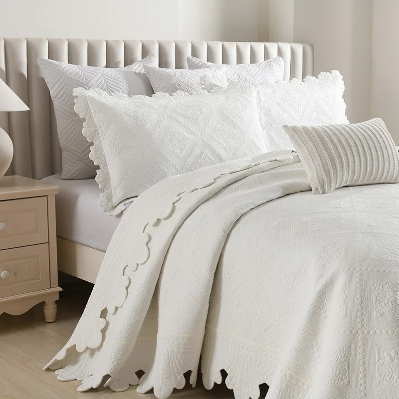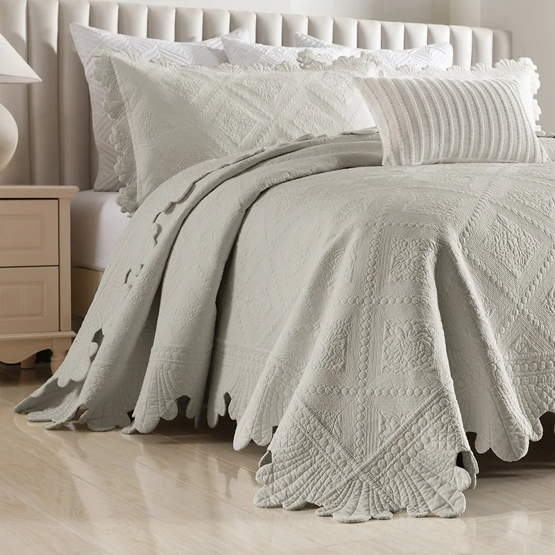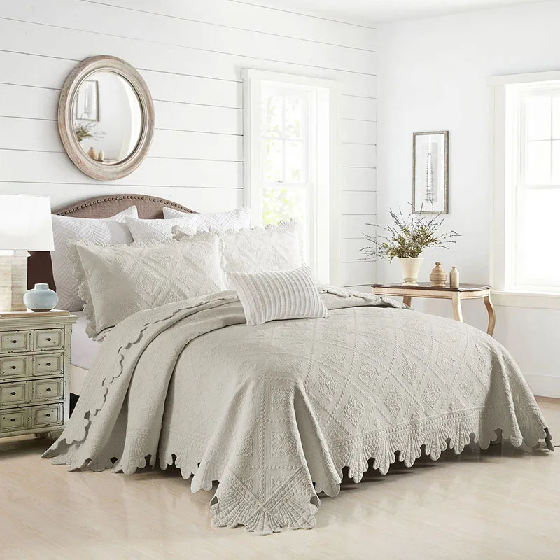 Quilted Bedspread with Pillowcase, 100% Cotton, Embroidery Quilt Set, Queen Size, Bed Cover, Summer Blanket, Double Size, 3Pcs