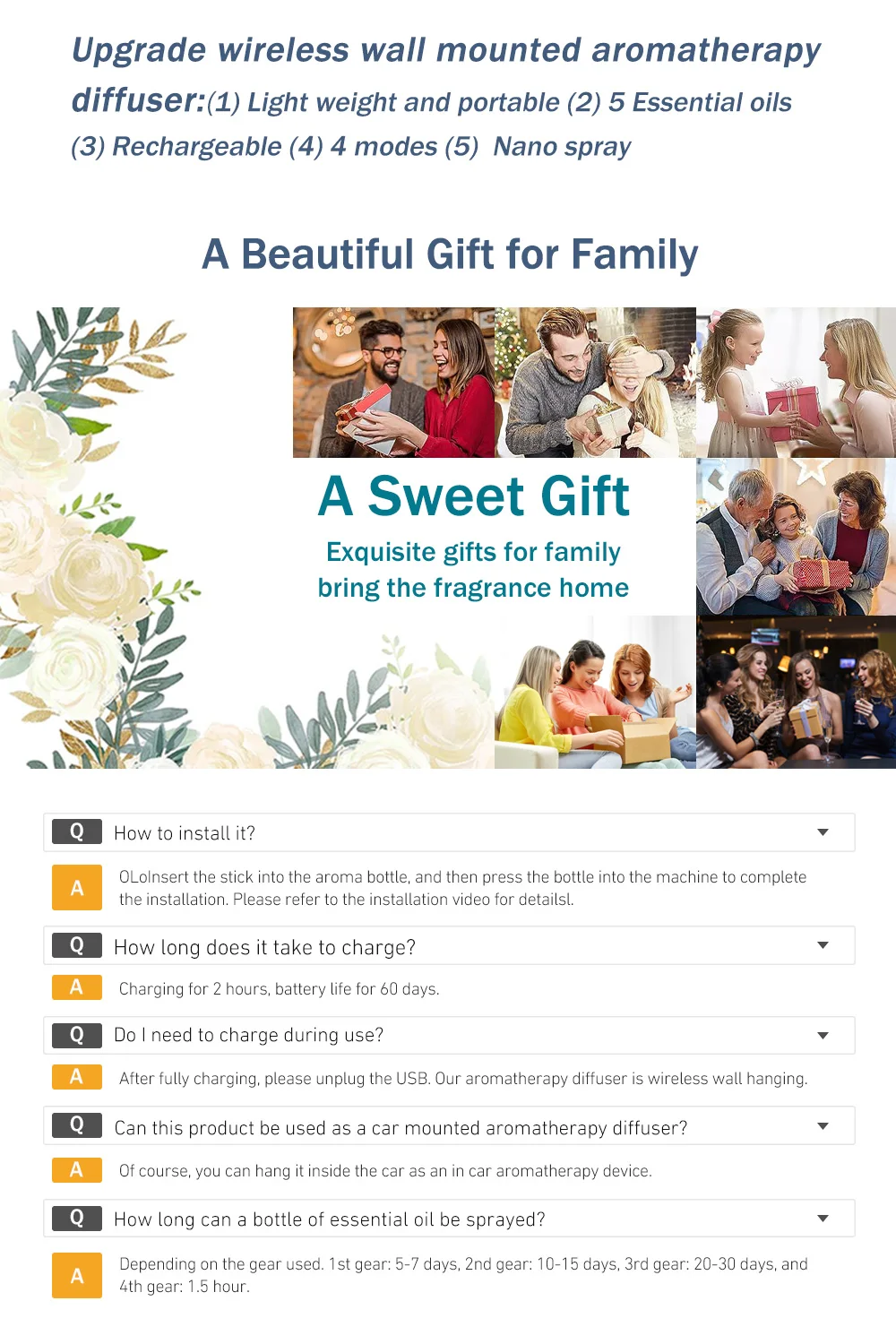 Rechargeable portable aroma diffuser Essential Oil Aromatherapy machine Timed air freshener to remove odors 5 modes timed spray
