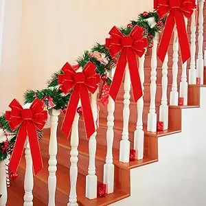 Red bows christmas stairs decorations