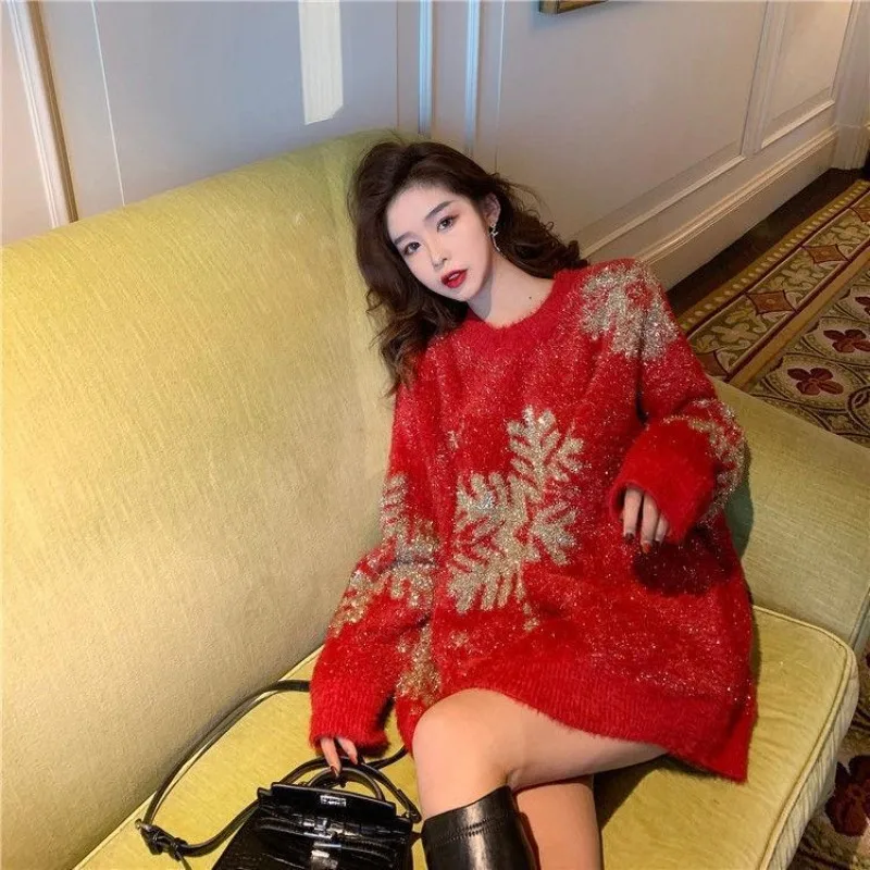 Red Knitted Sweaters for Women Round O Neck Sale All Cheap Warm Long Sleeve Clothing Sales Basic Fall Christmas Female Pullover