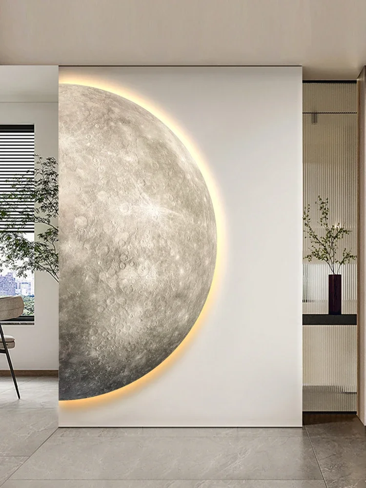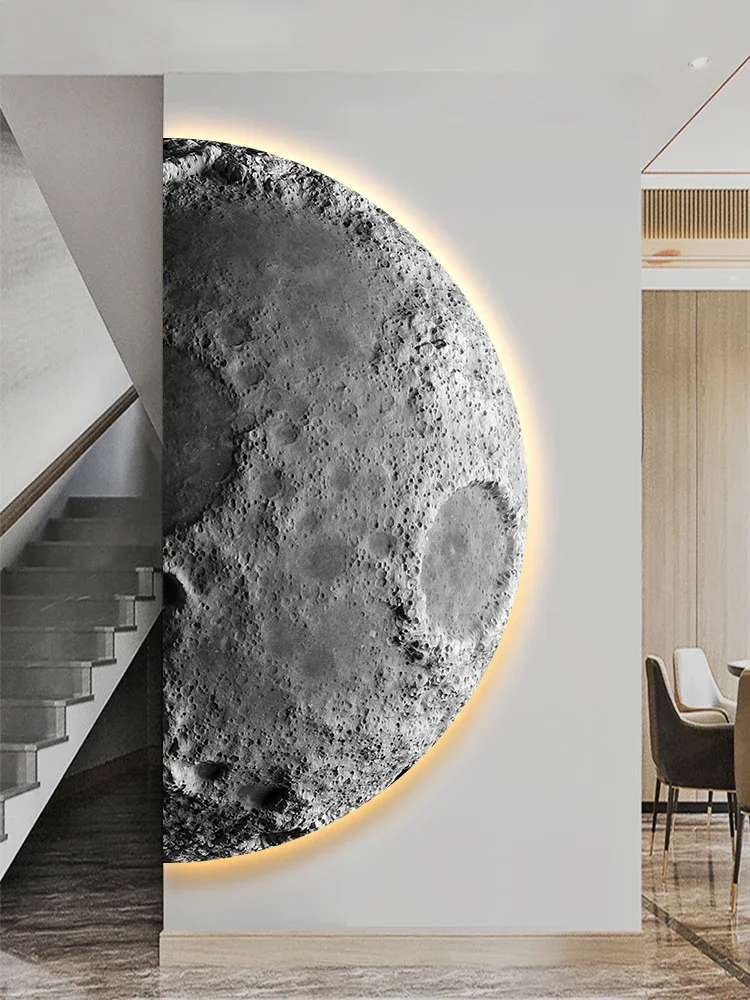 Remote Control Dimming Wall Painting Lamp Creative Minimalist Living Room Background Wall Decor LED Moon Painting Wall Lights