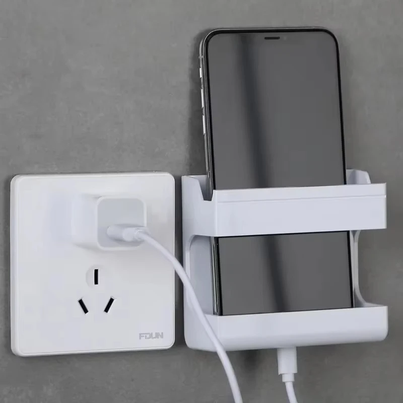 Remote Control Holder Adhesive Punch-free Socket Holder Without Drilling Mobile Phone Charging Living Room Organizer Storage Box