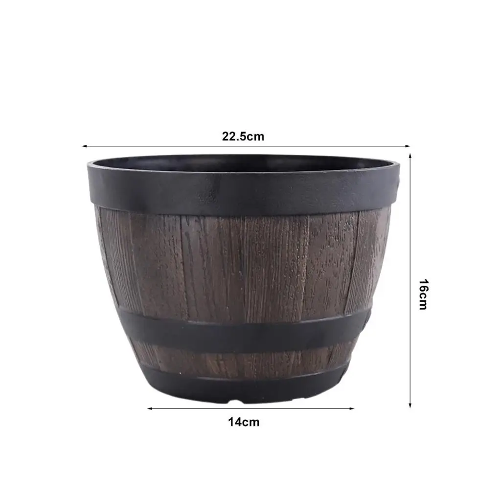 Simulation Wood Barrels 9 Inch Resin Flower Pot Vintage Style Bucket Shape Planter Home Decoration Outdoor Patio Farmhouse