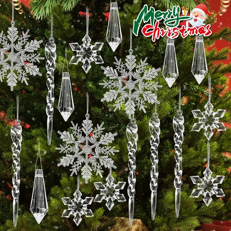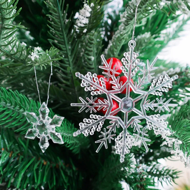 Snowflake Crystal Christmas Ornaments for Tree Decorations Hanging Clear Acrylic Beaded Pendent Winter Wedding Party Supplies