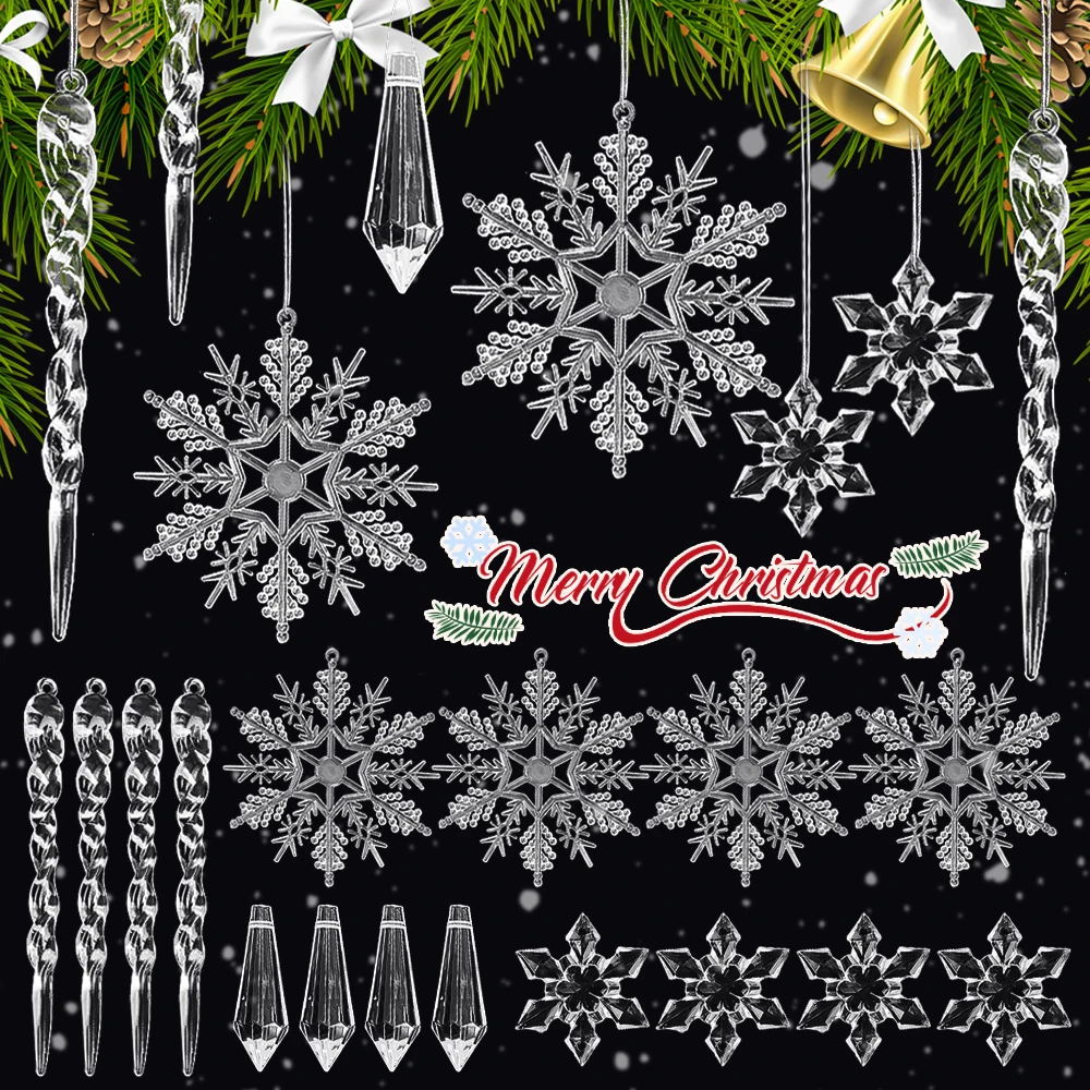 Size DE: 12 packs containing 4 large snowflakes +4 10cm icicles +4 5cm icicles