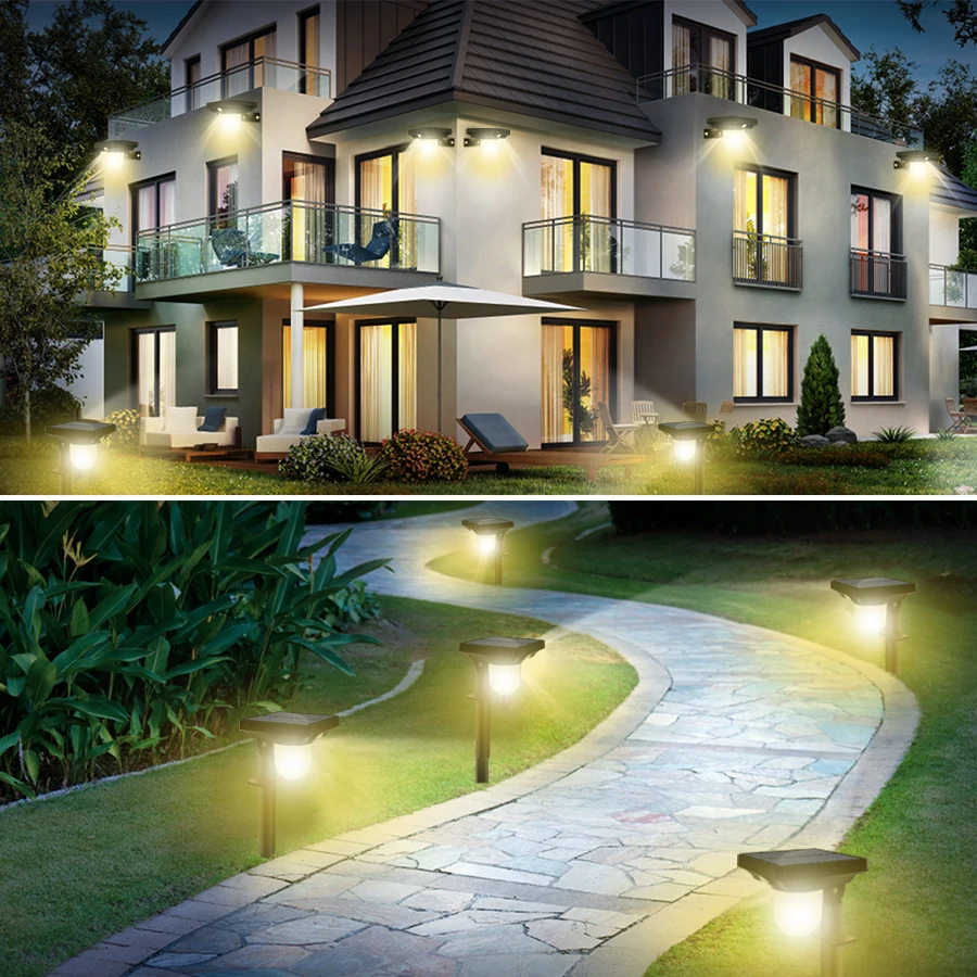 【WATERPROOF & DURABLE】 These solar lights outdoor garden are made with high-quality ABS plastic materials with an IP65 waterproof rating. Garden lights solar powered waterproof can withstand harsh weather conditions like rain, snow, and heat, ensuring they remain in good condition for an extended period. It transform modern home ambiance and spice up your outdoor life.