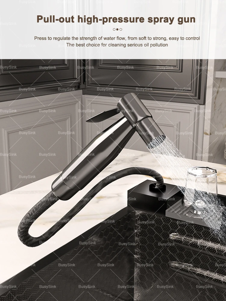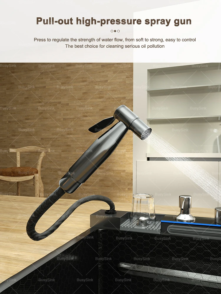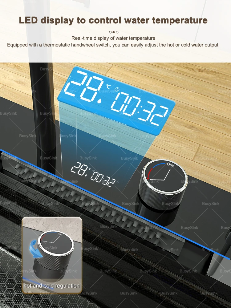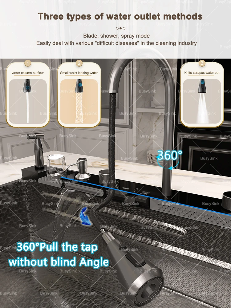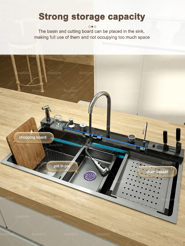 Stainless Steel Kitchen Sink With Waterfall Extra Large Single Bowl Digital Display Multifunctional Dishwashing Sinks
