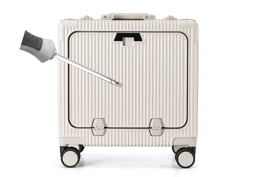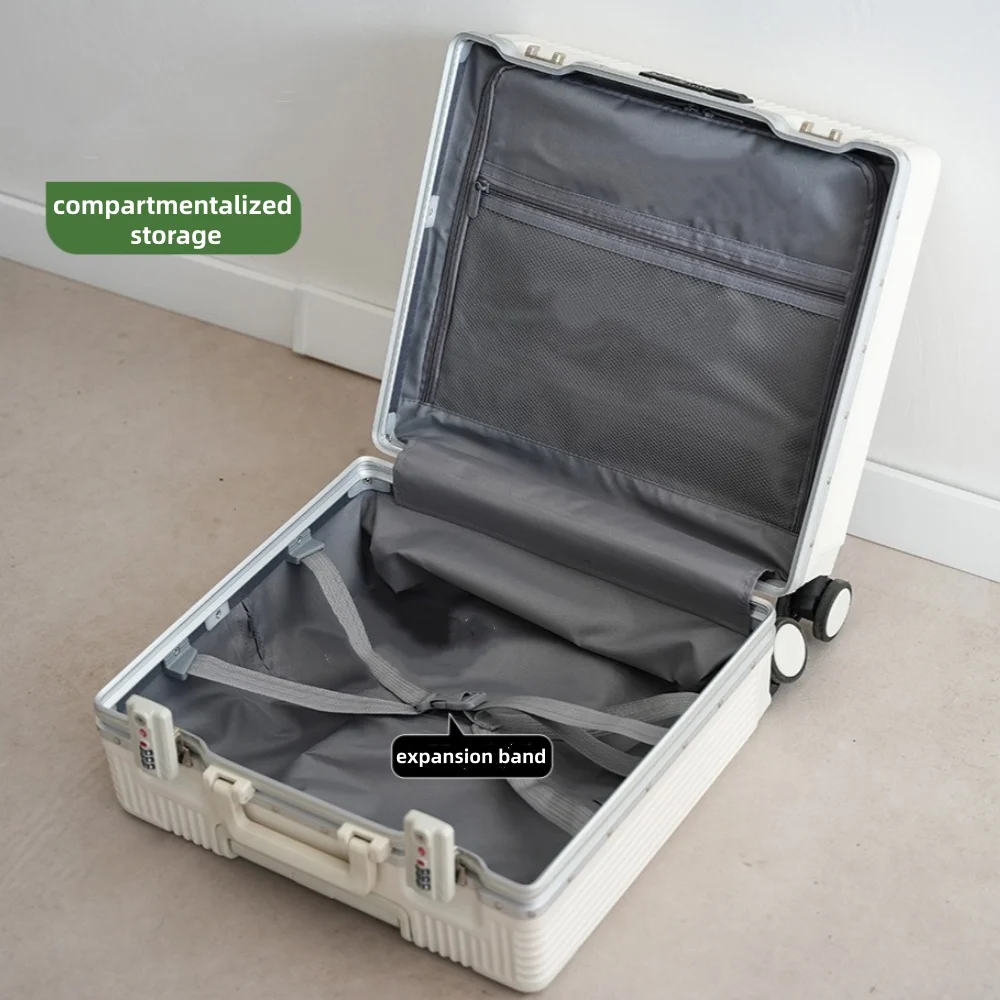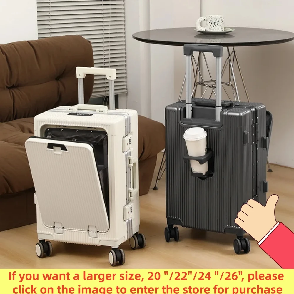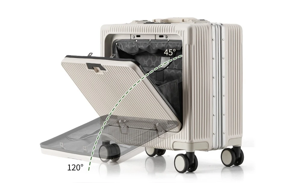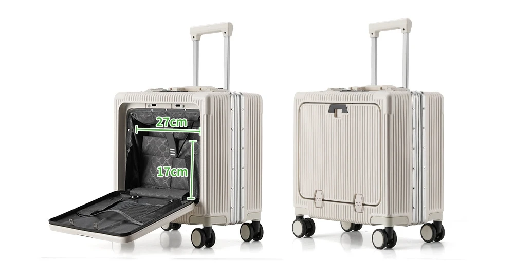 Suitcase Front Opening Pocket Aluminum Alloy Frame Rolling Luggage 18″ Carry On Boarding Travel Trolley Bags with Spinner Wheel