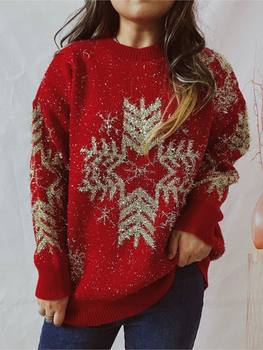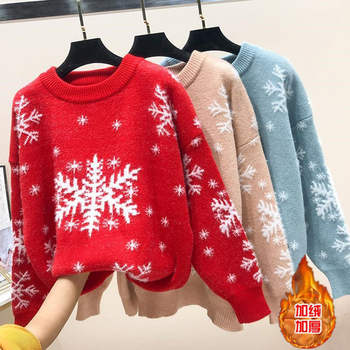 Loose Gold Thread Big Snowflake Christmas Sweater Round Neck Long Sleeve Thickened Pullover For Women Casual Trendy Pulls Femmes