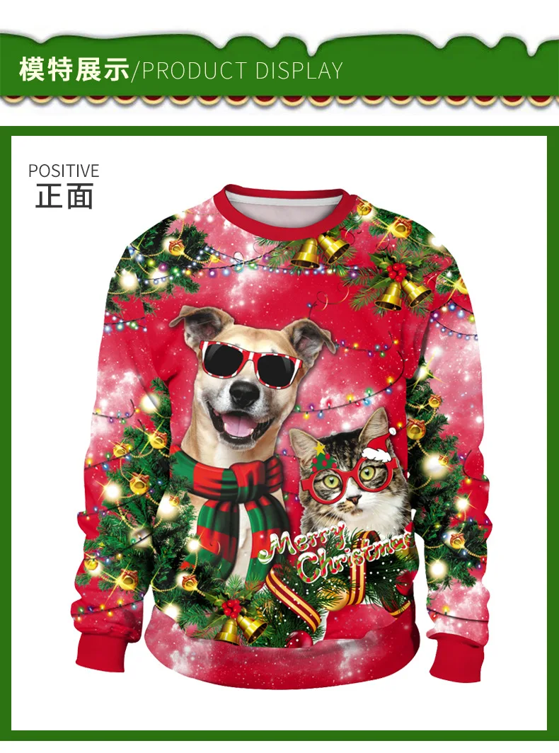 The new printed round-neck pullover fake sweater for Christmas 2026 is an ugly Christmas couple’s sweatshirt for both men women
