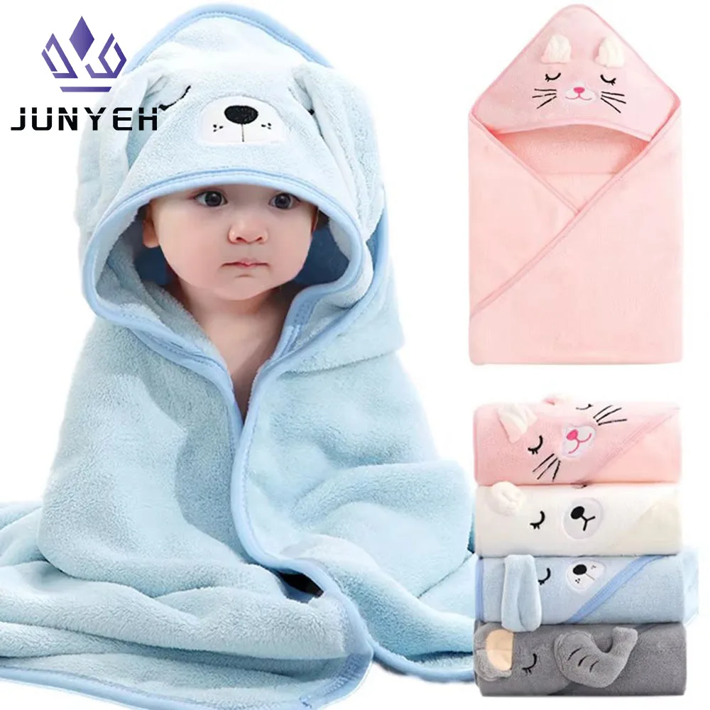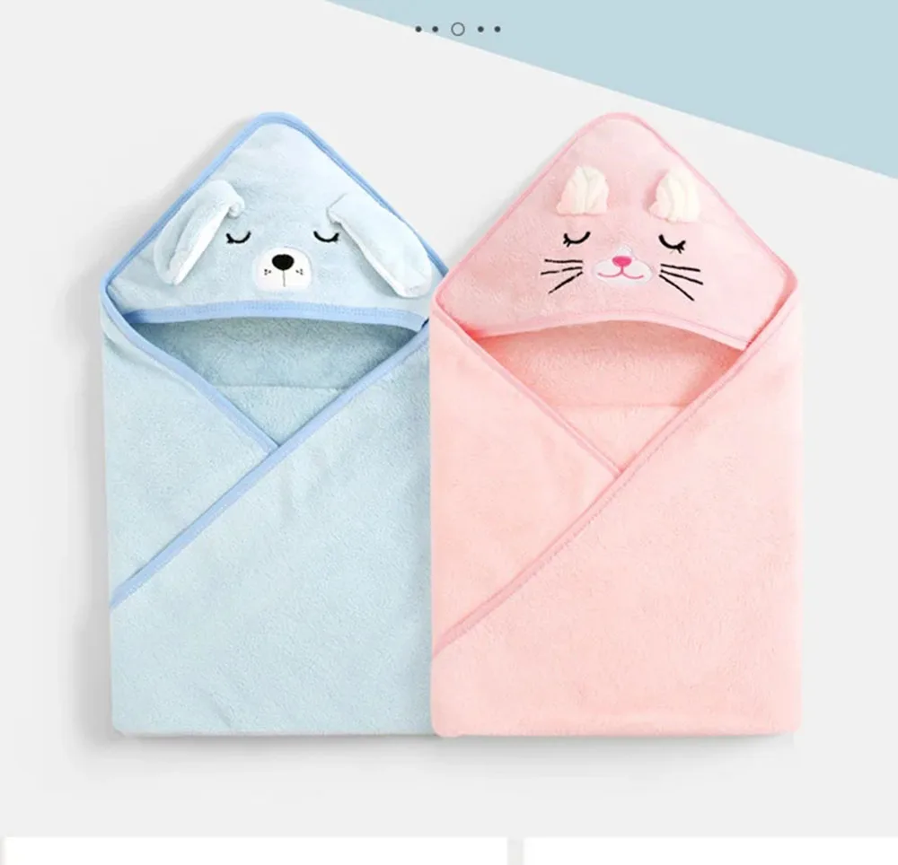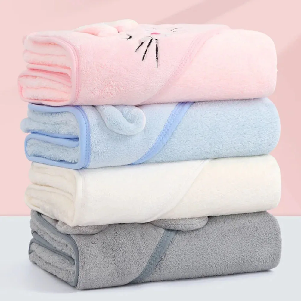 Toddler Bathrobe Infant Bath Towel Boy Girl Blankets Swaddle With Hood Cartoon Coral Fleece Towel Blanket Newborn Kids Bedding