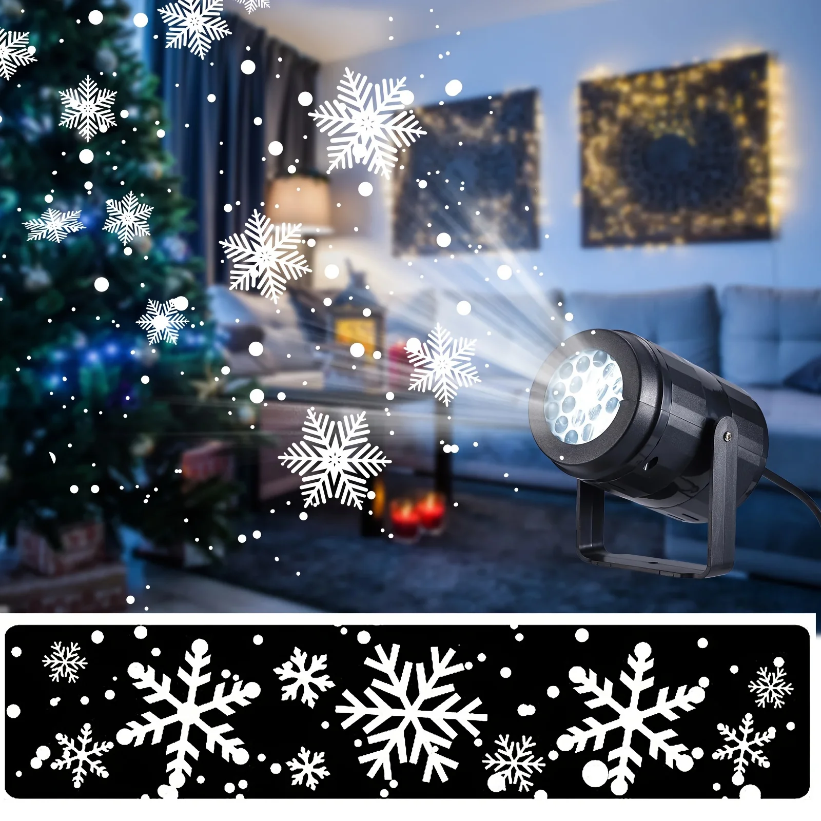 USB Powered Snowflake Projector Light White Snow Pattern Rotating LED Stage Lamp for Holiday Party Christmas Decor New Year Gift