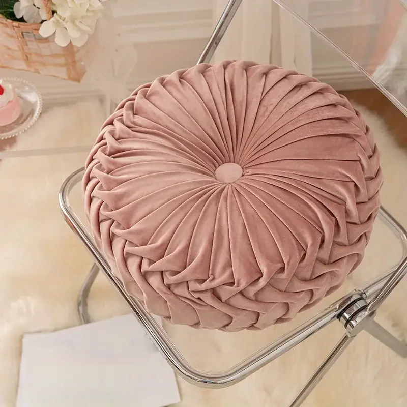 Velvet Pumpkin Pillow Backrest Lumbar Support Cushion Soft Round Solid Color Suitable for Sofa Bed Floor Office Chair