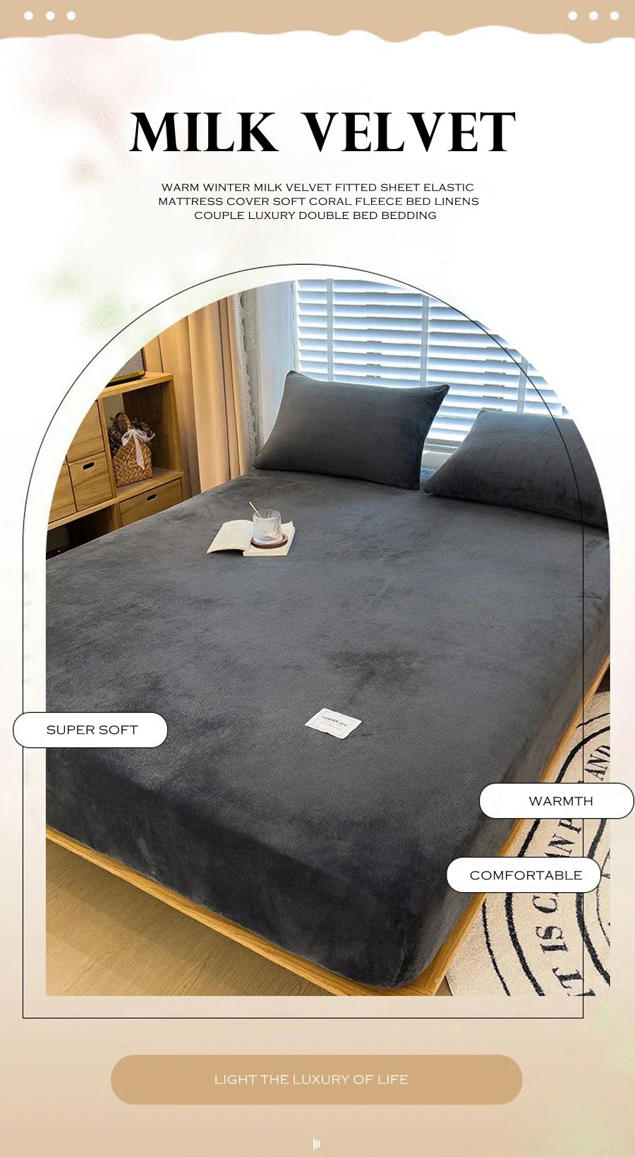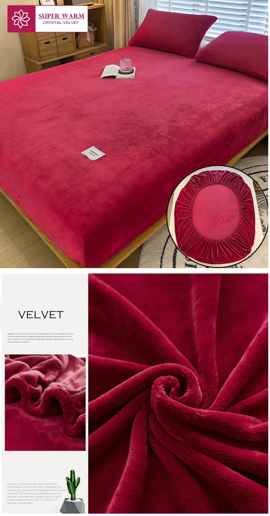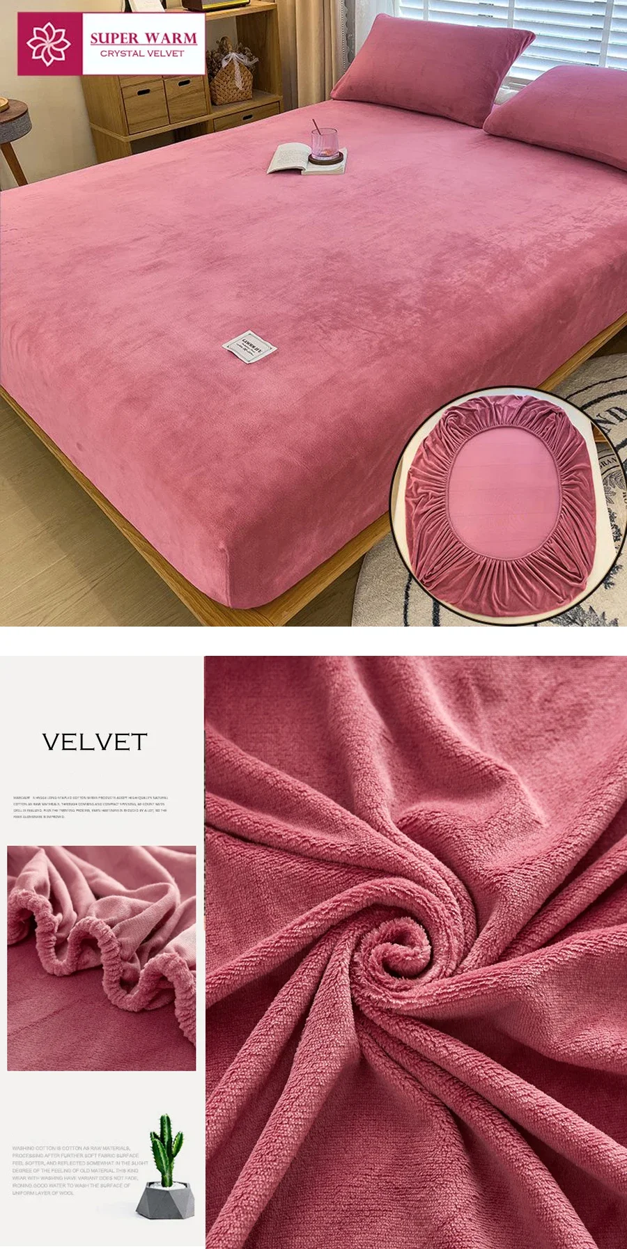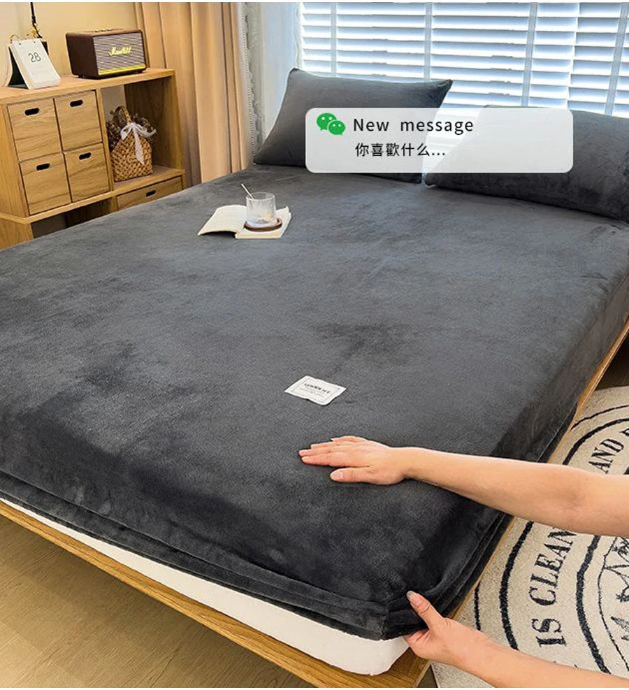 Warm winter velvet fleece fitted sheet elastic mattress cover couple bed linen luxury double bed thermal sheet king size
