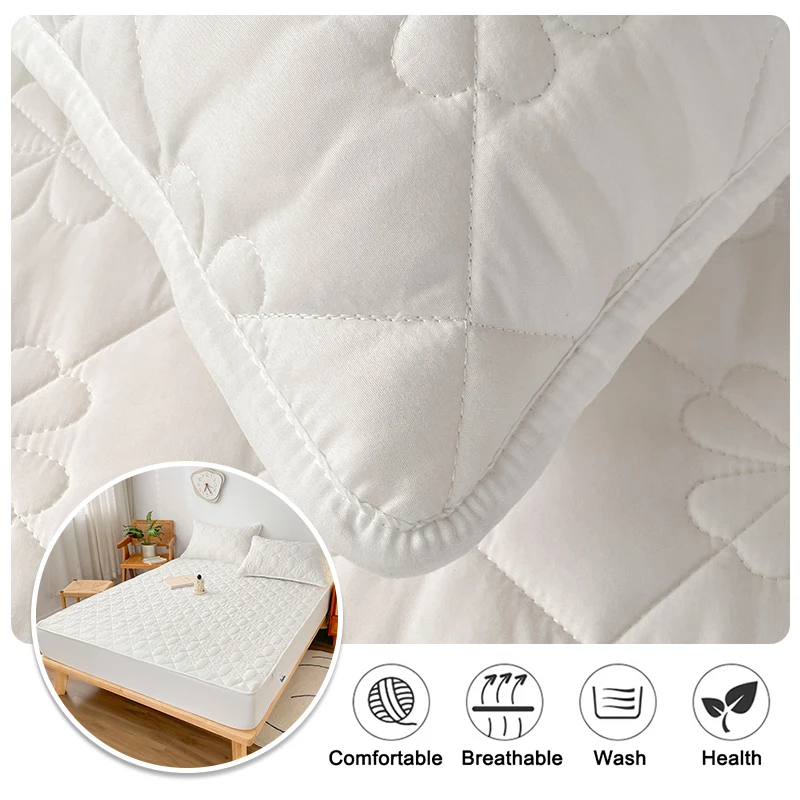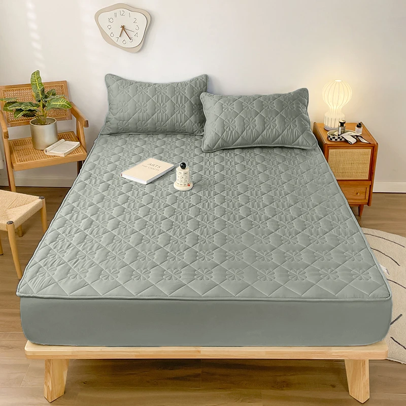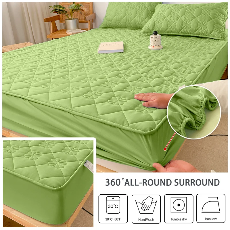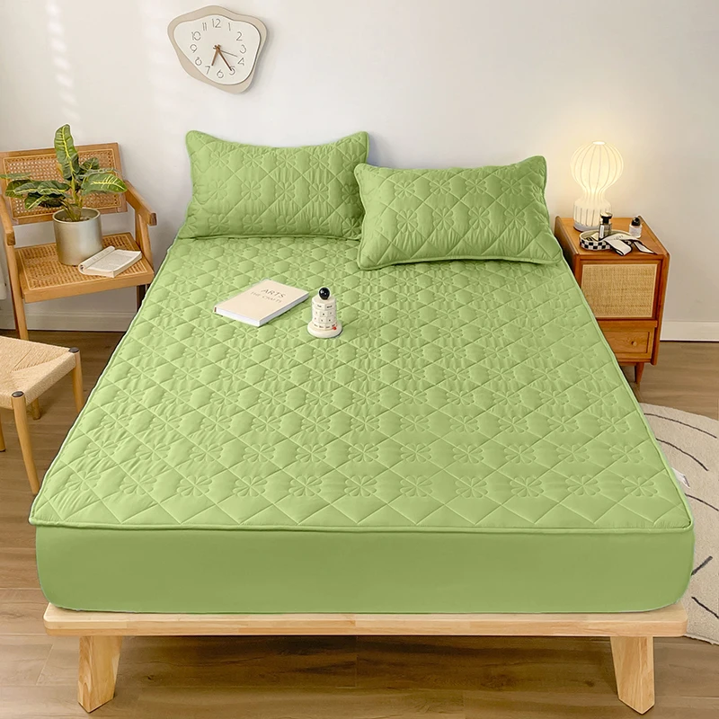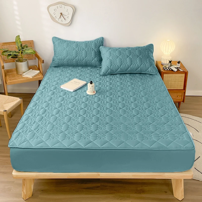 Waterproof Fitted Sheet with Elastic Band Solid Color Quilted Mattress Cover Soft Jacquard Bed Cover for Queen King Full Sizes