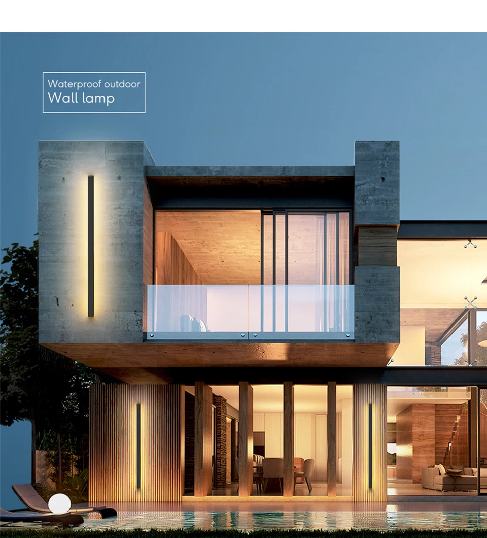 Waterproof outdoor wall lamp LED Long Linear lighting IP65 Aluminum for Garden Garage porch Sconces Fixtures 110V 220V Luminaire