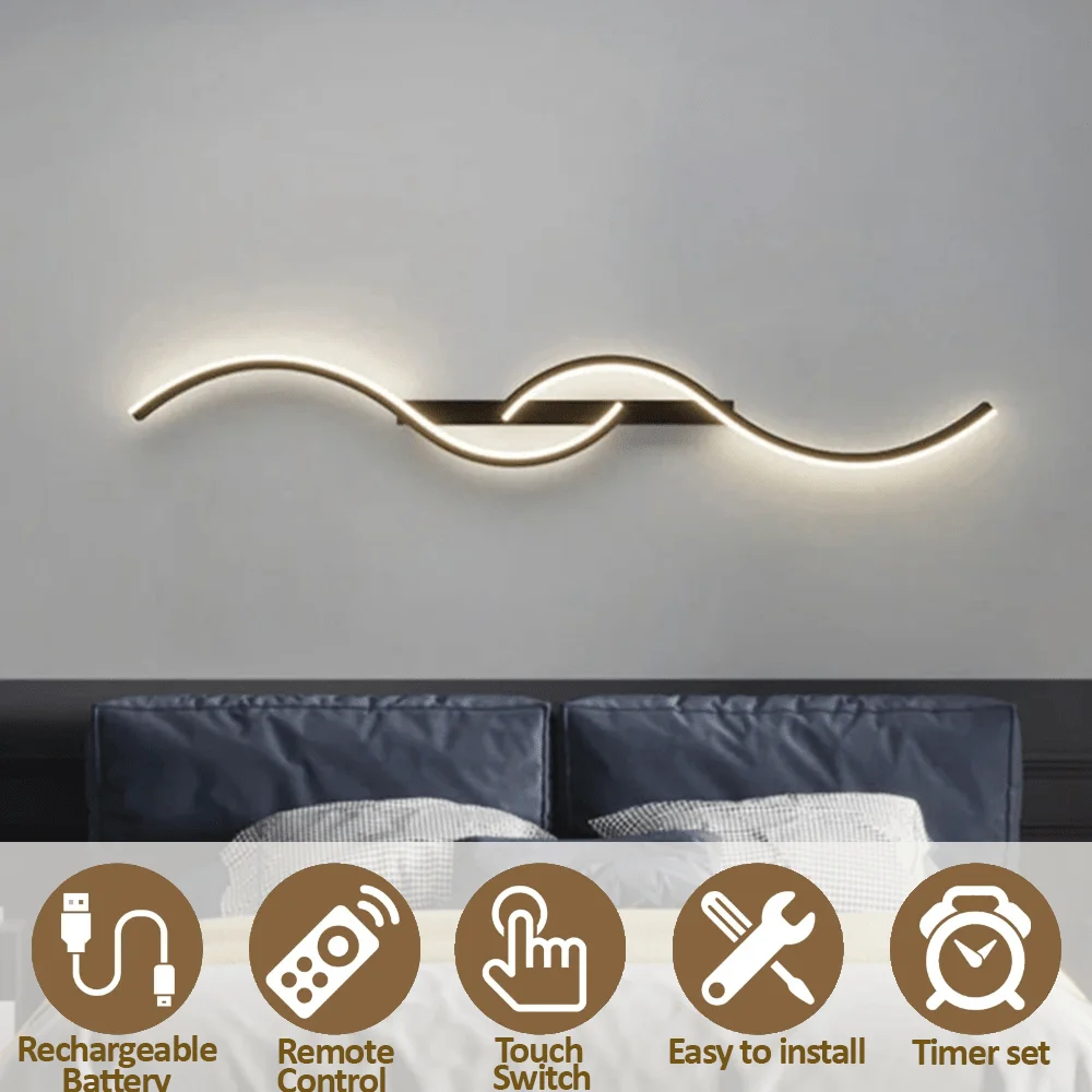 Wireless LED Wall Lamp 5V Rechargeable 80cm Wall Light with Remote Control Modern Bedroom Bedside Lamp Black