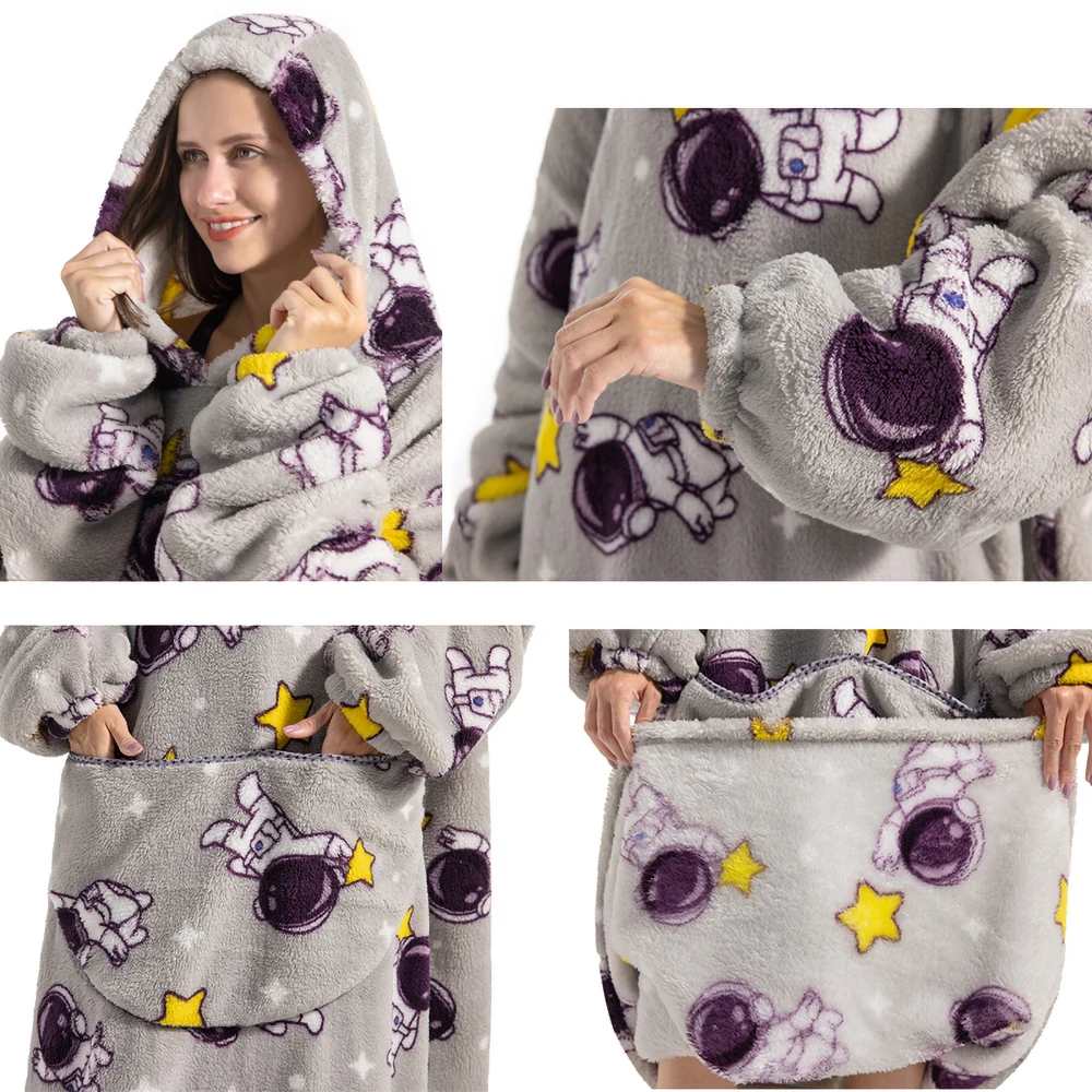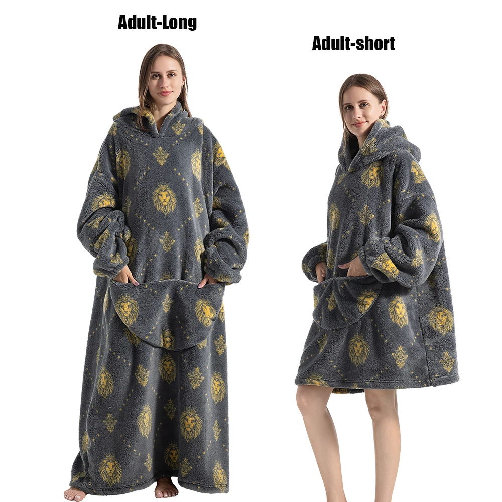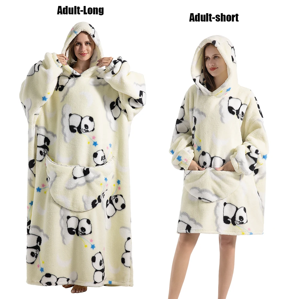 Women Plush Fleece Blanket Men Warm Thick Hoodies Adult Giant TV Blanlets with Sleeves Super Long Cold-proof Homewear Pajamas