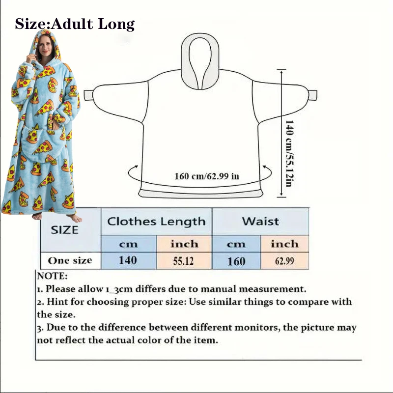 Our blanket hoodie is more convenient and practical than traditional hoodie blankets. There is a big pocket to hold remote, phone, snacks and so on. Leaving Your Hands Free.