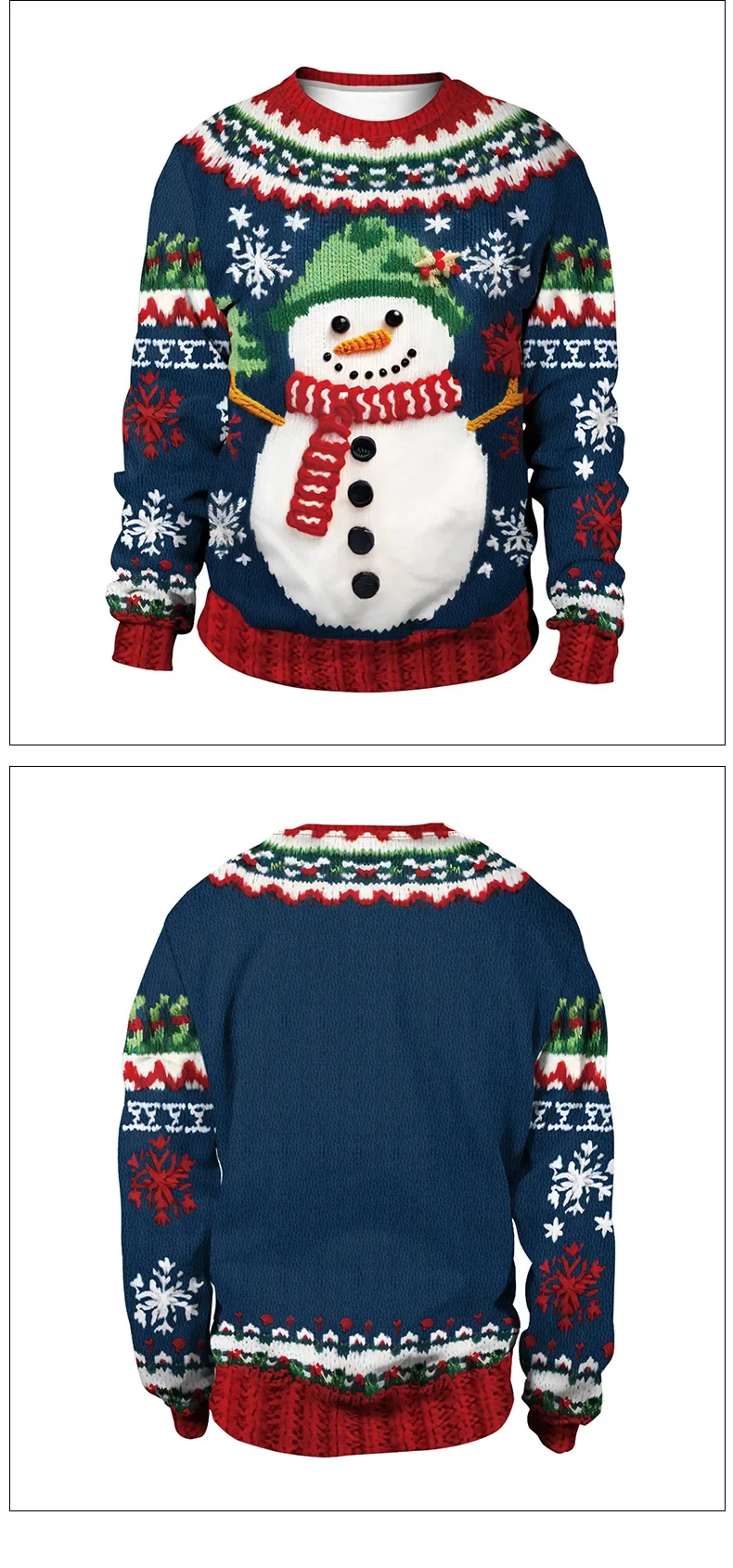 Women’s Sweater Pullover Round Neck Printed Long Sleeve Christmas Autumn Winter Knitted Top